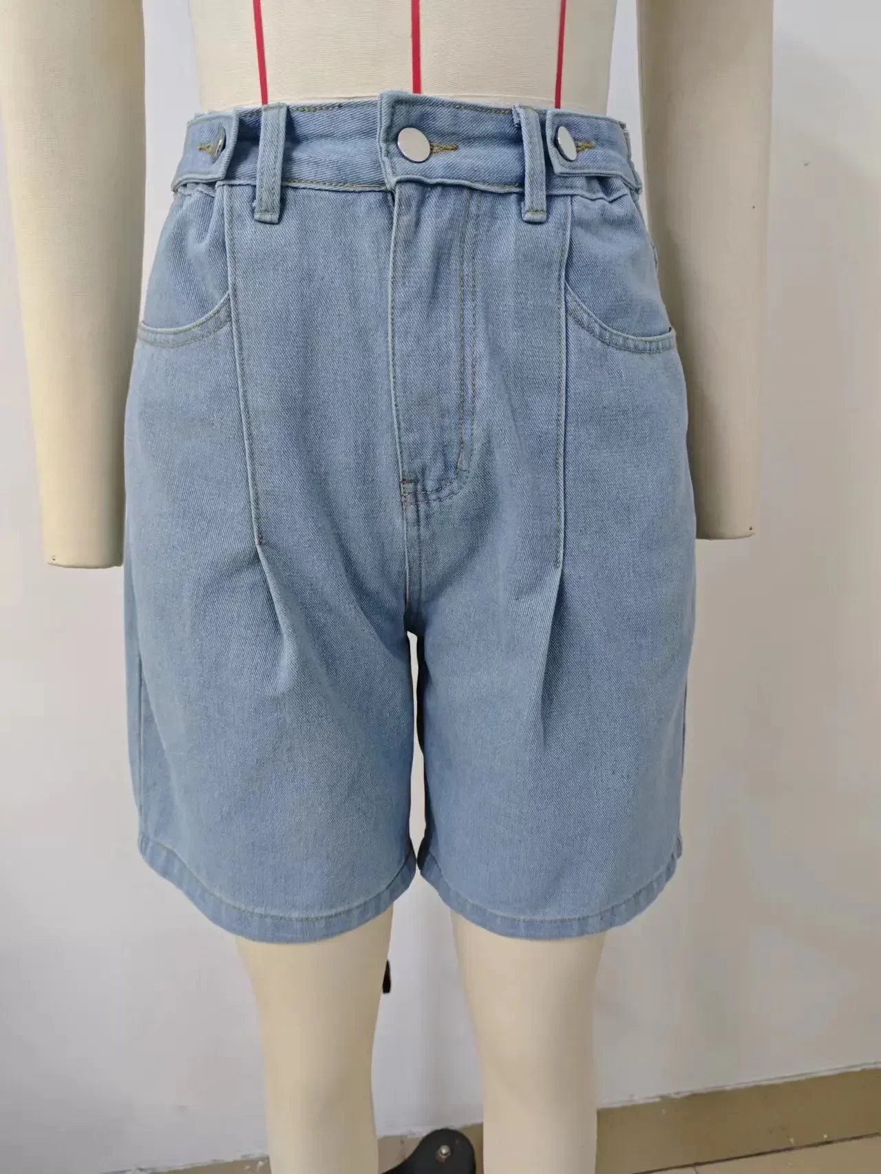 Summer High Waist Short Jeans Streetwear Washed Waist Adjustable Denim Cropped Pants Women Pockets Denim Shorts Casual