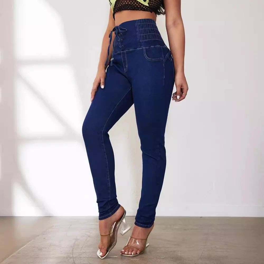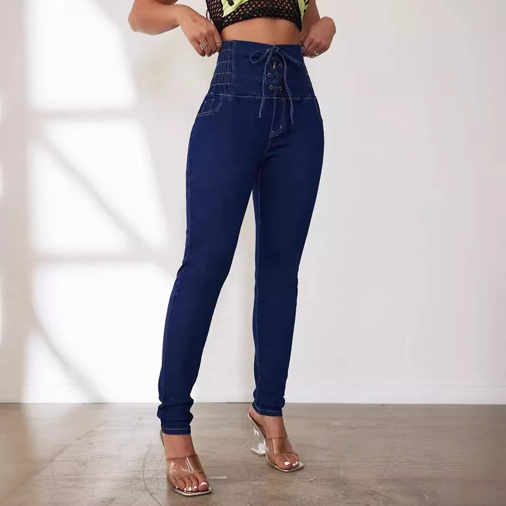 Name | Women Ankle Length Denim Pants Drawstring Jean Spliced Washed Sheath Pencil Jeans Skinny Solid High Waist Pockets Casual |