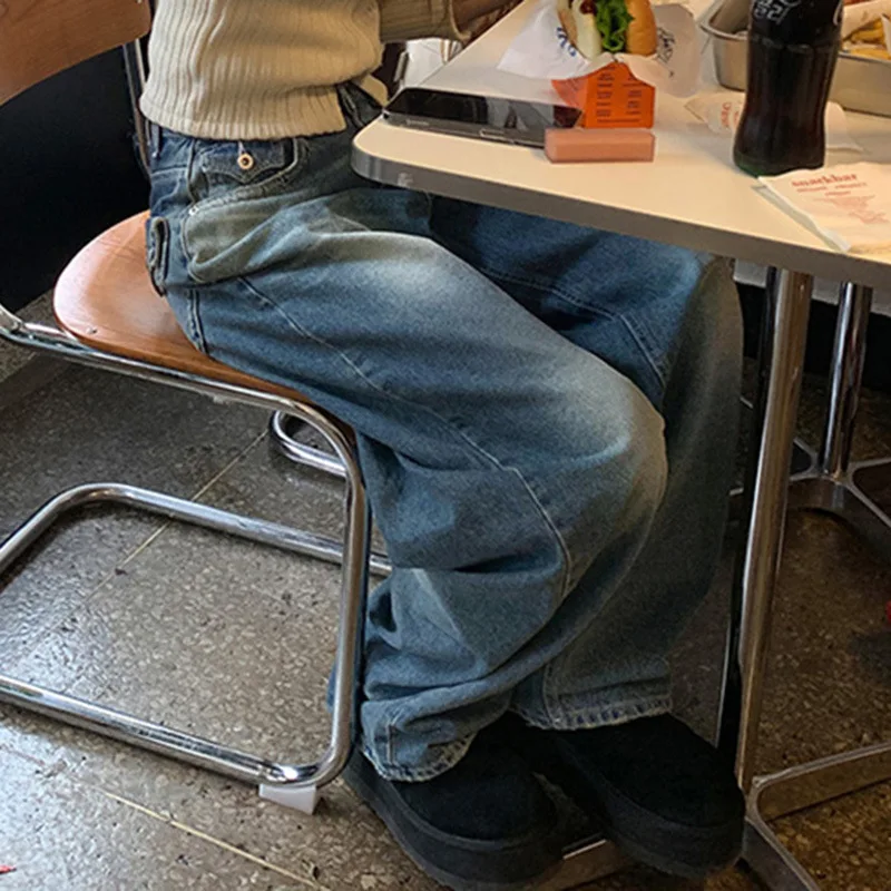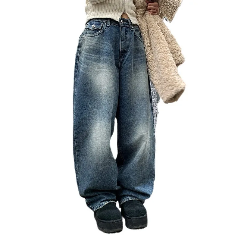 Name | Full Length Women Jeans Mid Waist Denim Straight Pants Distressed Pockets Loose Fit Spliced Washing 2024 Summer Basics |