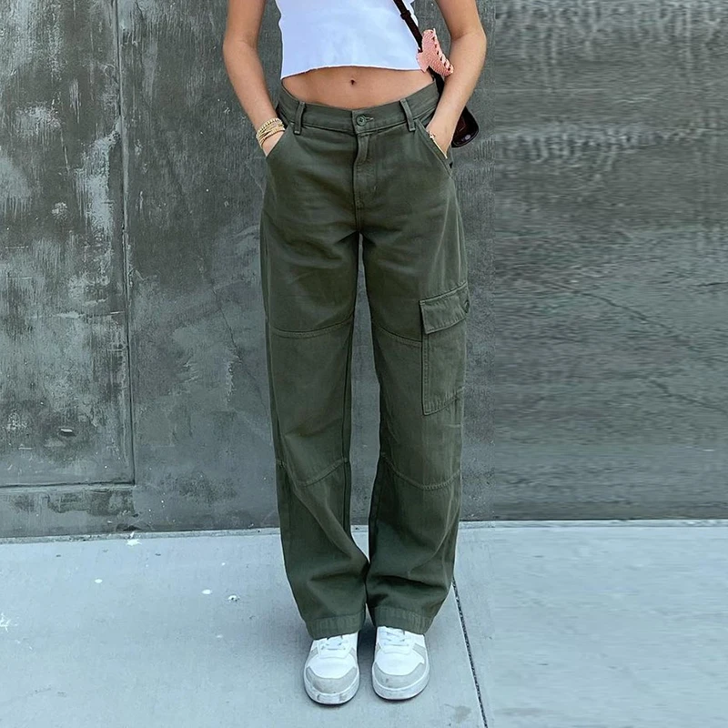 Name | Women's Denim Pants Side Pockets High Waist Slimming Casual Outfits Party Solid Color Trousers Army Green Summer Streetwear Y2k |