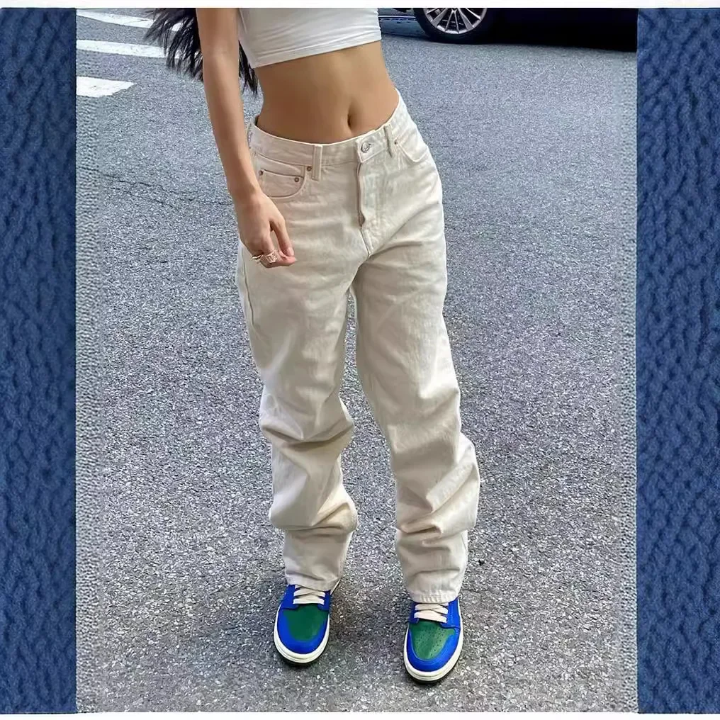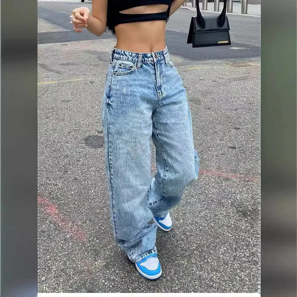 Women's Spring and Autumn New Casual Slim-fit Fashion Jeans Solid Color High Waist Straight Leg Jeans Y2k Denim Wide Leg Pants