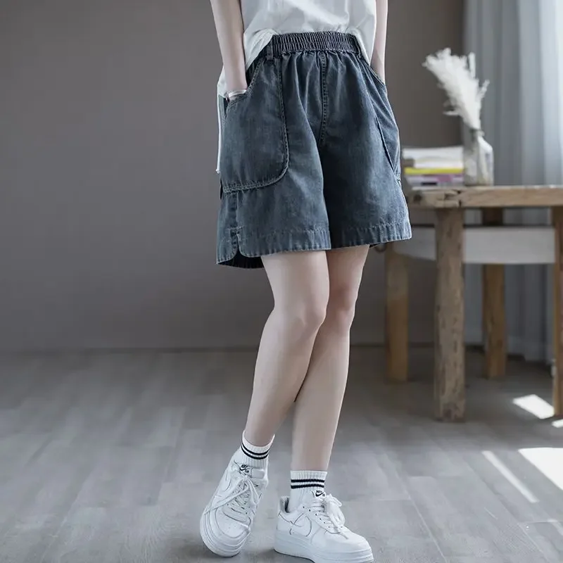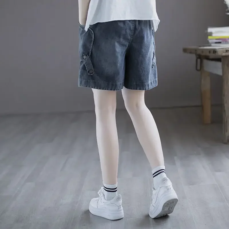 2024 Summer Loose Wide Leg Denim Shorts Urban Women's Jeans Pants Y2k Fashion Korea Japanese Street Style Blue Newjeans Clothing