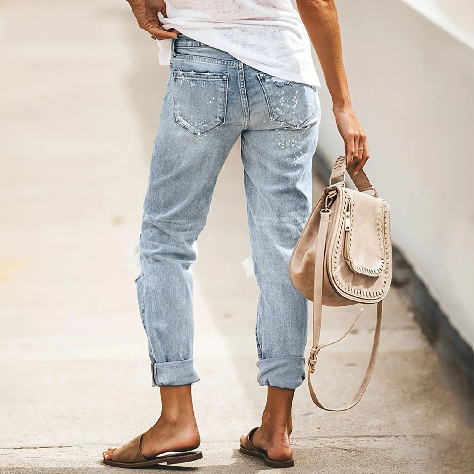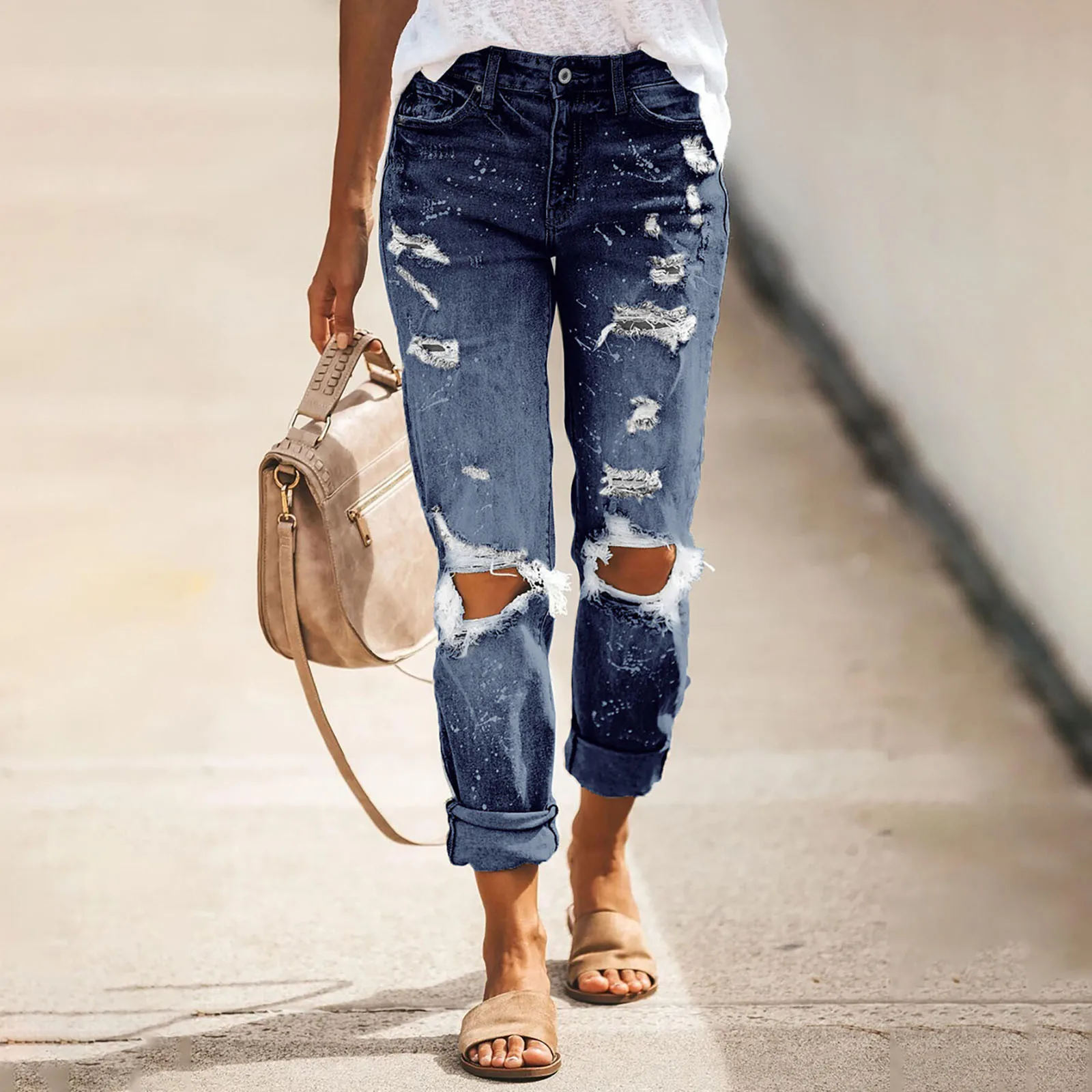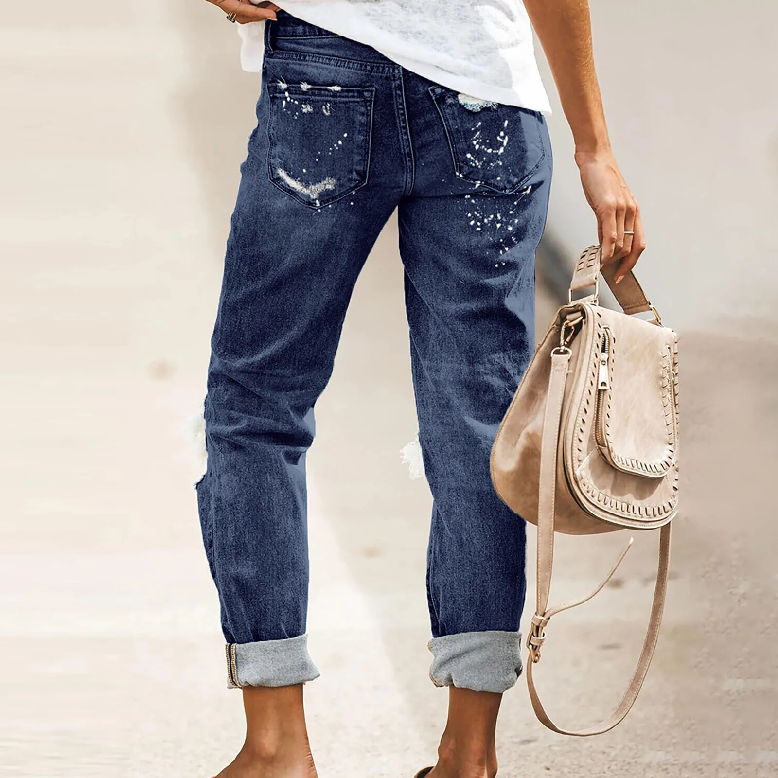 Name | Mid Waist Boyfriend Big Ripped Hole Jeans Women Street Hipsters Washed Slim Fit Denim Pants Vintage Stretch Casual Trousers |
