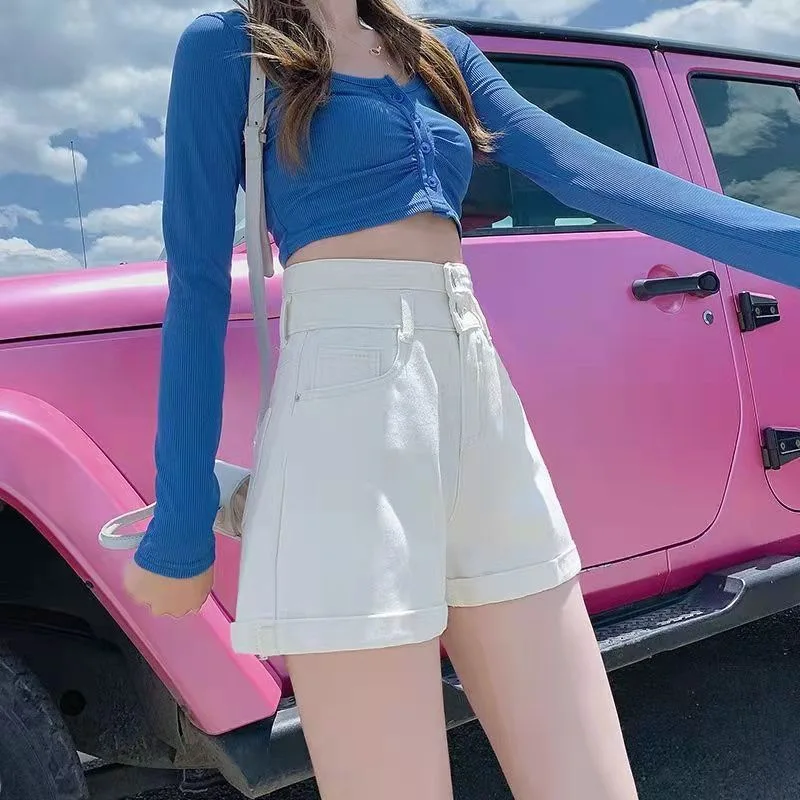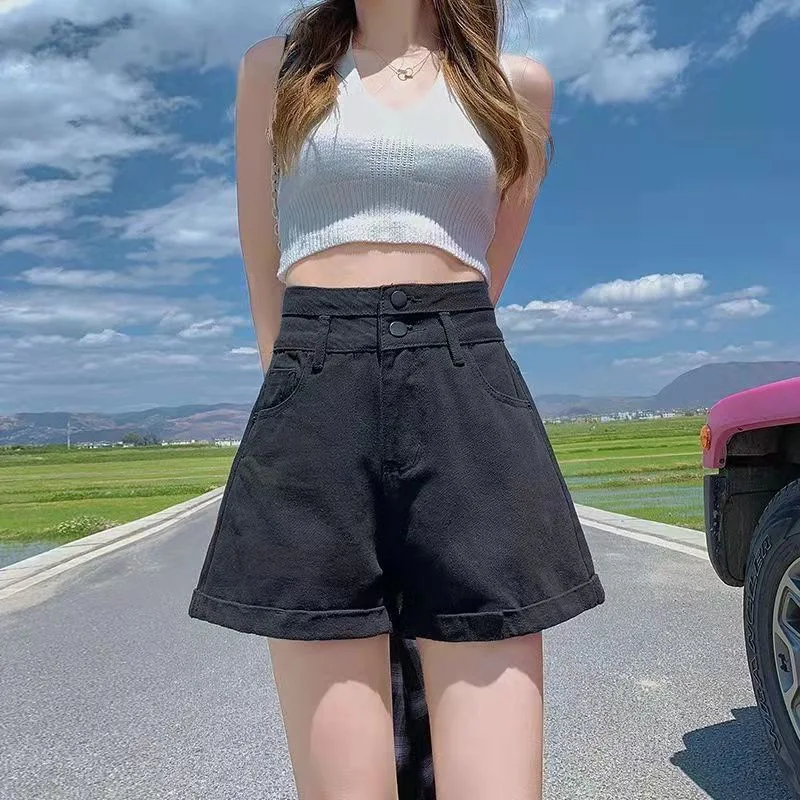 2023 Summer A line Denim Shorts for Women Korean Fashion High Waisted Short Pants Female All-Match Casual Loose Short Jeans