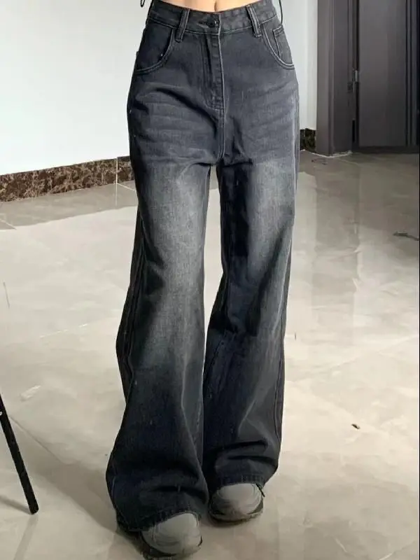 2024 Summer Trendy Retro Loose Wide Leg Jeans for Small Size Women with High Waist and Slimming Effect