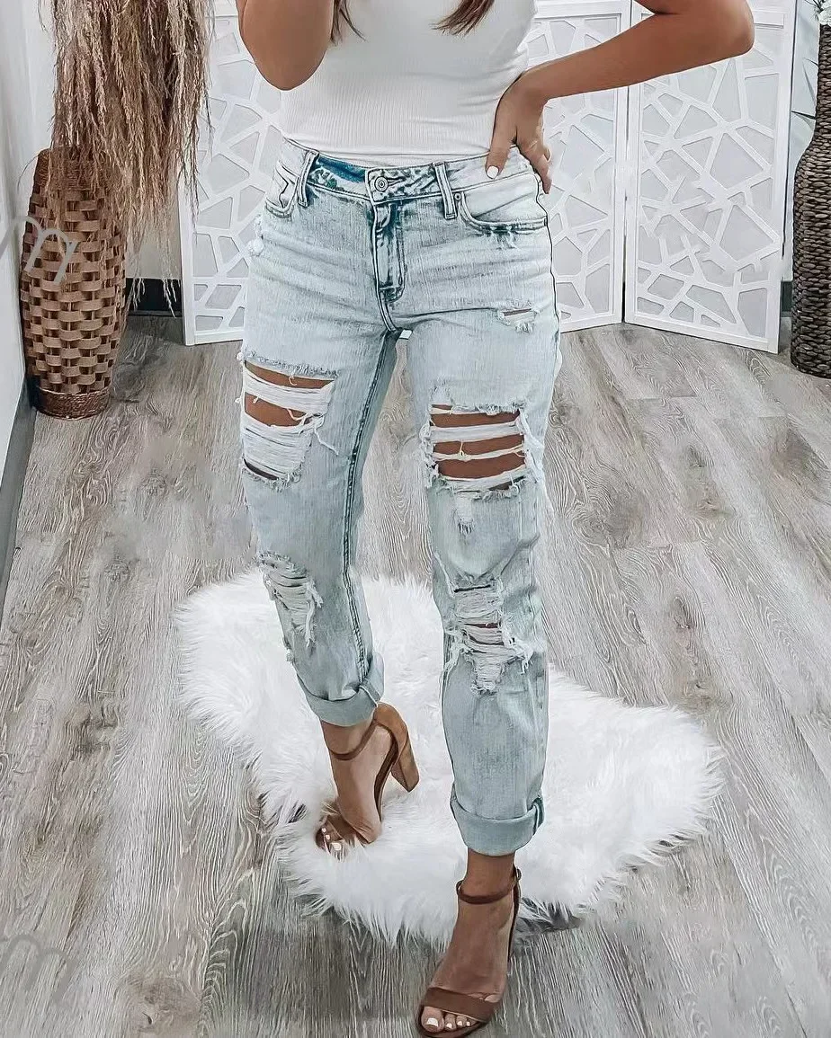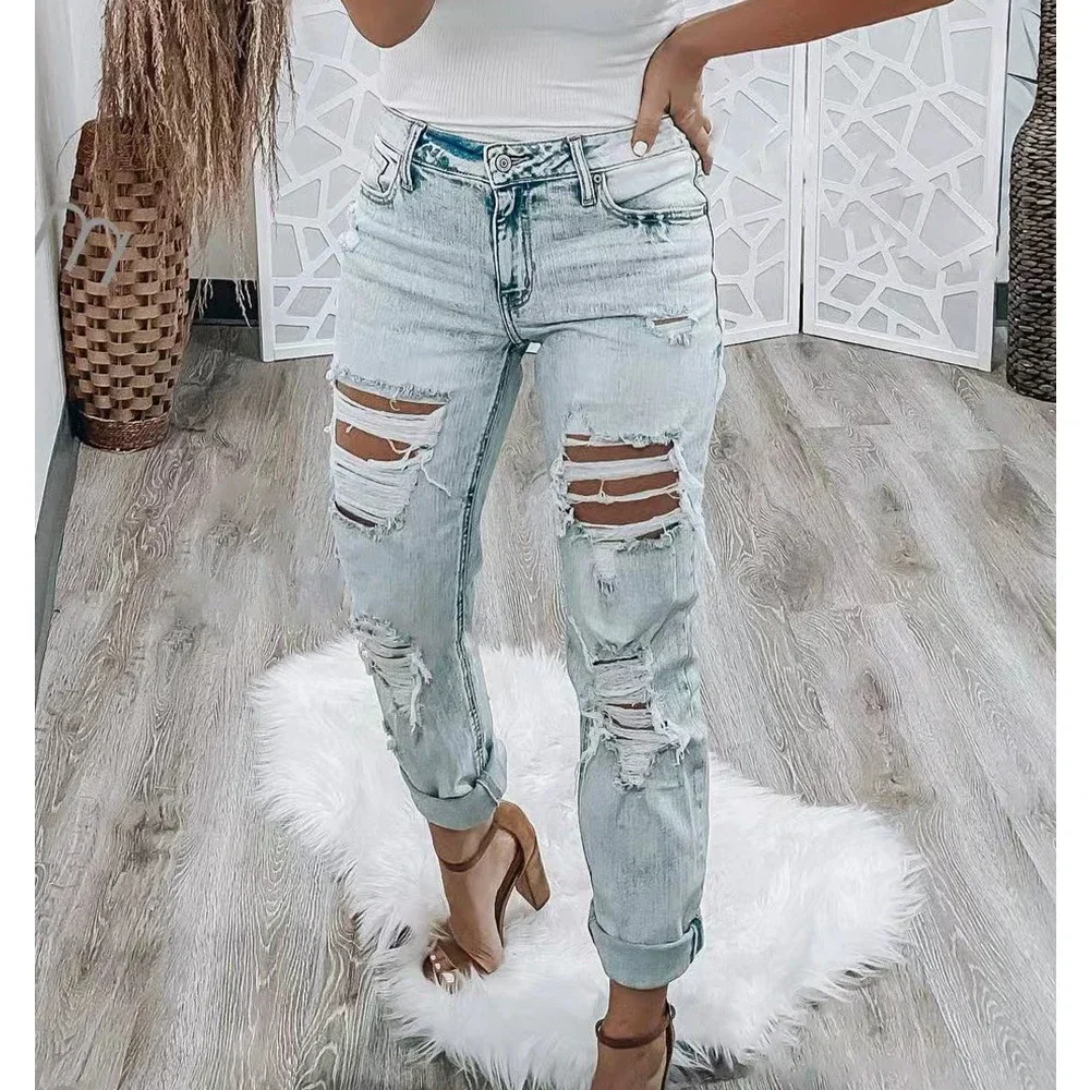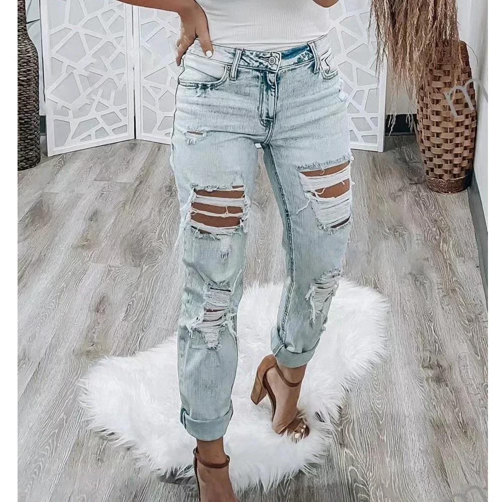 Name | Streetwear Jeans Fashion Slim Fit High Waist Hole Slimming Ripped Denim Trousers Women's 2023 Summer Washed Ripped Dress |