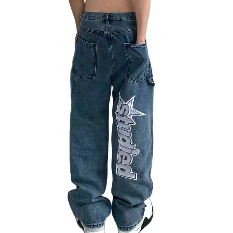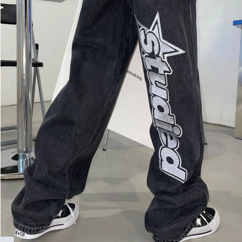 Name | Black Women Letter Embroidery Jeans Women Street Retro Wild Oversized Wide-leg Pants Lovers Loose Trend Casual High-Waist Pants |