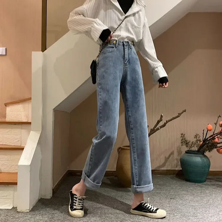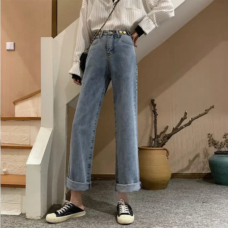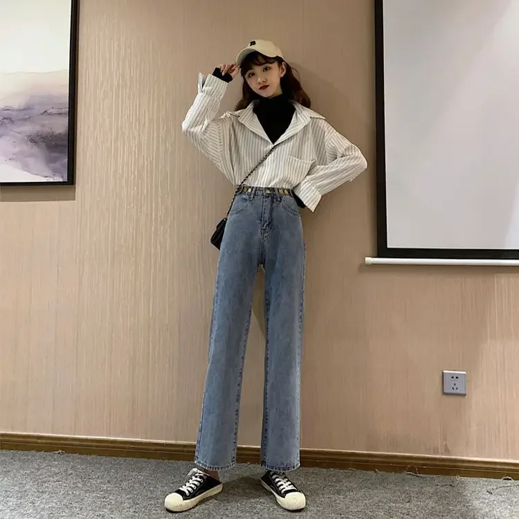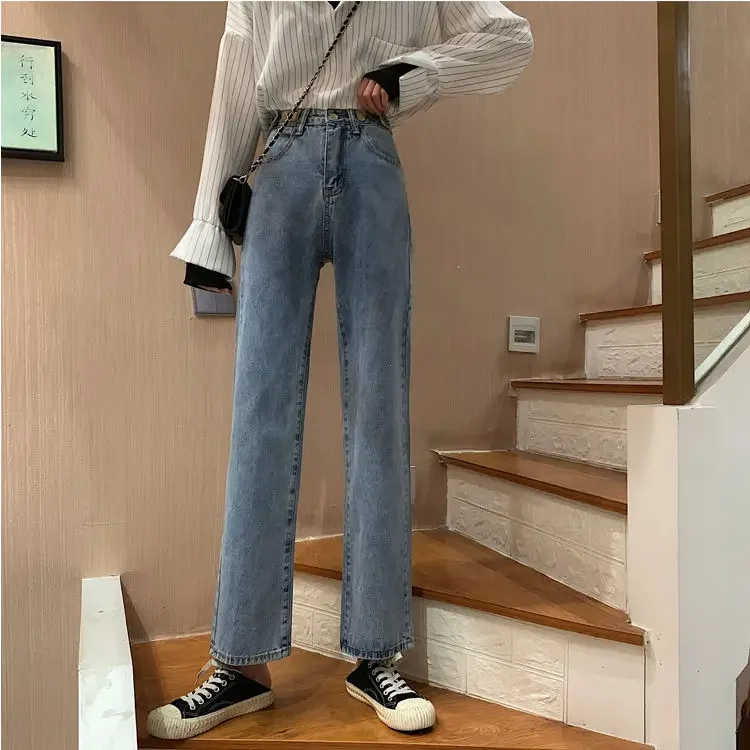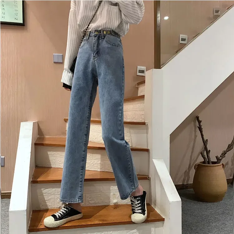 High waist wide leg jeans women pendant spring and autumn show thin 100 loose mop straight pants