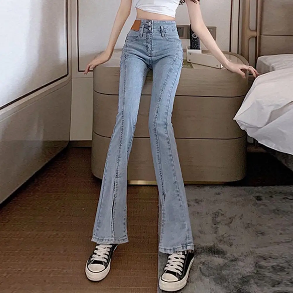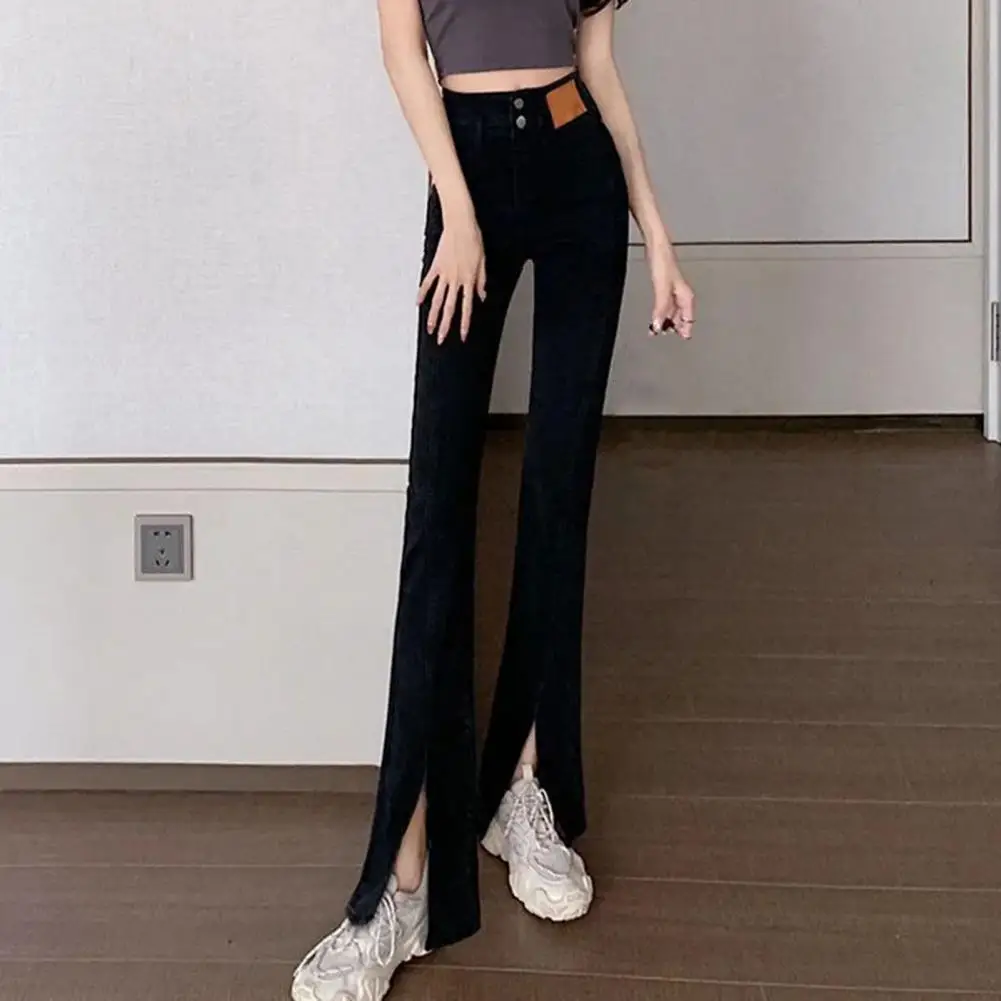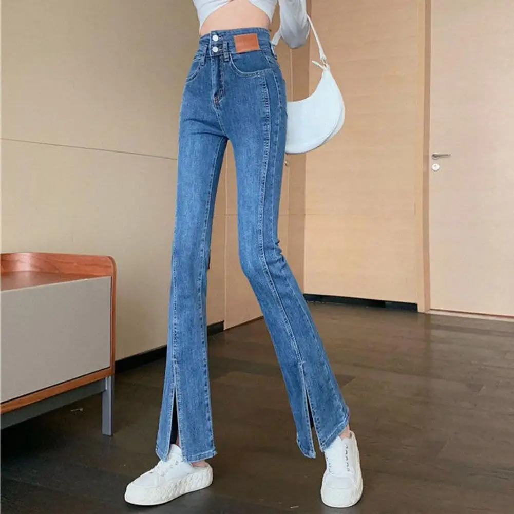 Name | Streetwear Elastic Denim Flare Pants Woman High Waist Vintage Blue Split Jeans Woman Korean Chic Black Bell Bottom Jeans Female |