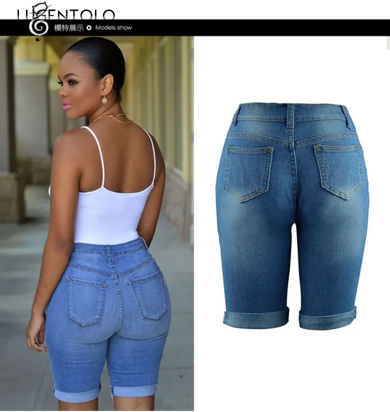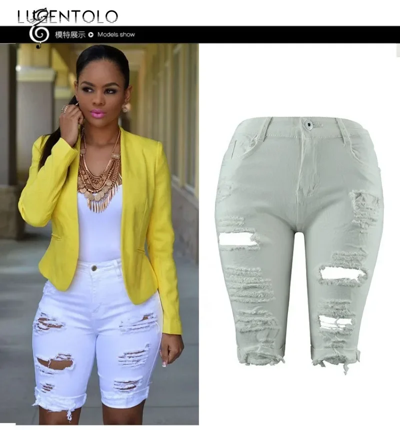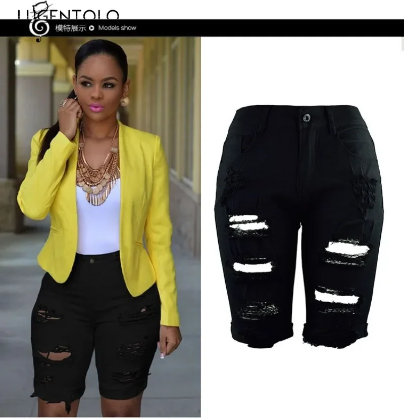 Women Ripped Denim Big Hole Jeans Fashion New High Waist Washed Female Solid Casual Street Skinny Sexy Shorts