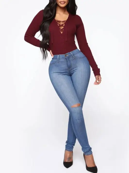 Name | High Stretch Holes Jeans Women Denim Pencil Pants Bootcut Pull-on Skinny Jeans |