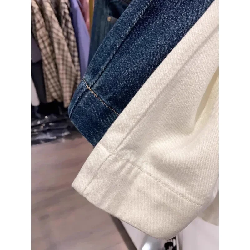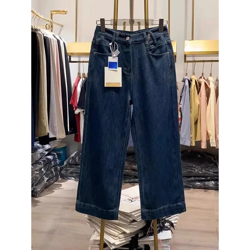 Straight Pants High Waist Jeans Women Denim Loose Fit Pockets Spliced Solid Colour Basics Trousers 2024 Vintage Casual Denims