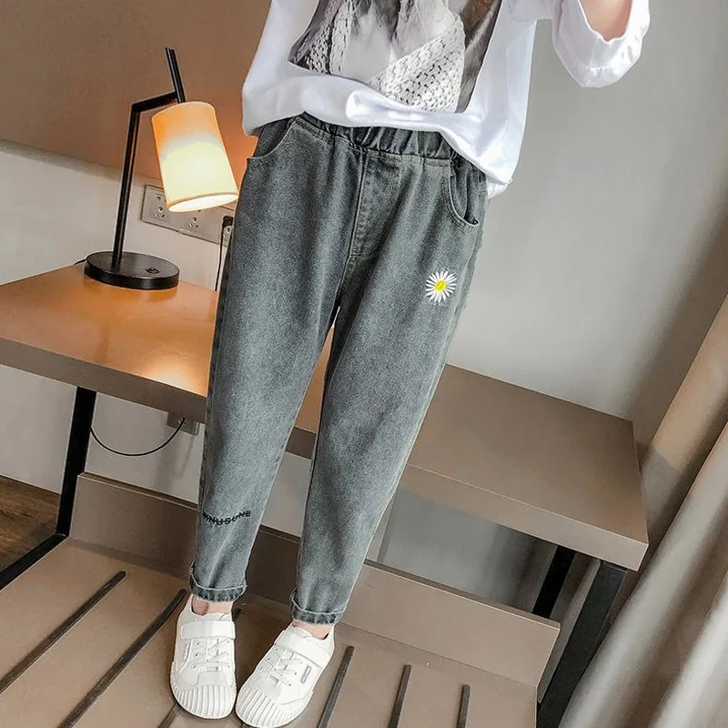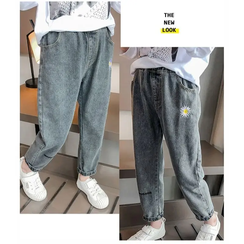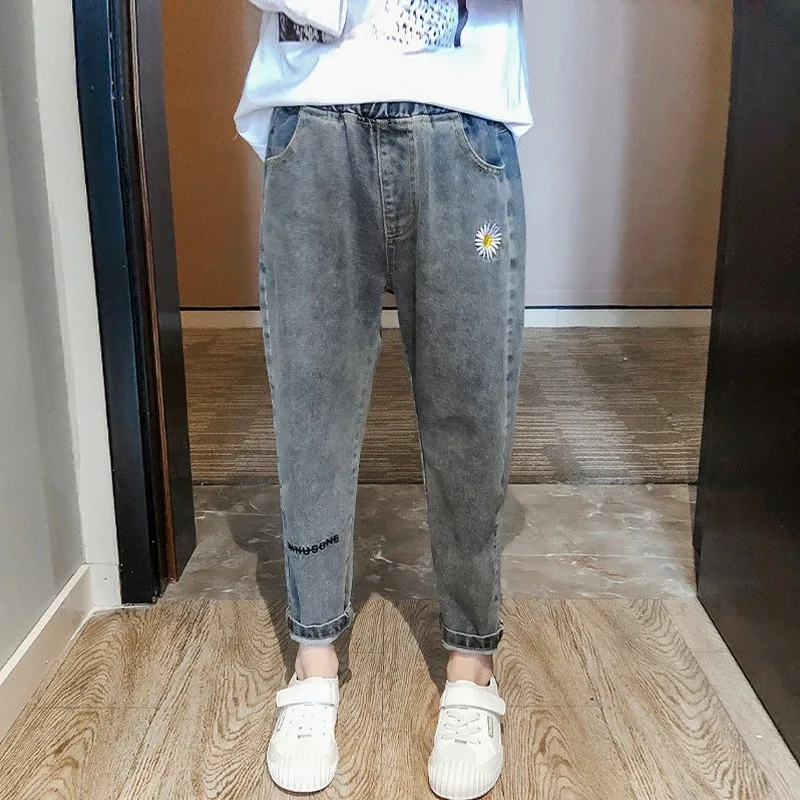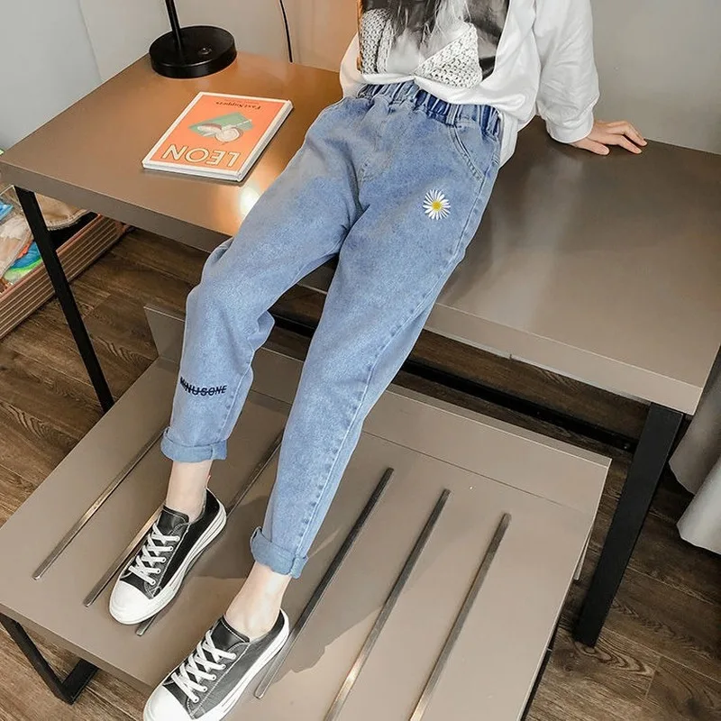 Name | Ladies Small Daisy Embroidery Pants New Elastic Waist Jeans Loose Korean Version Slim Straight-leg Jeans Mother Jeans |
