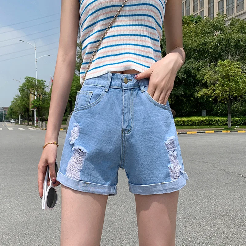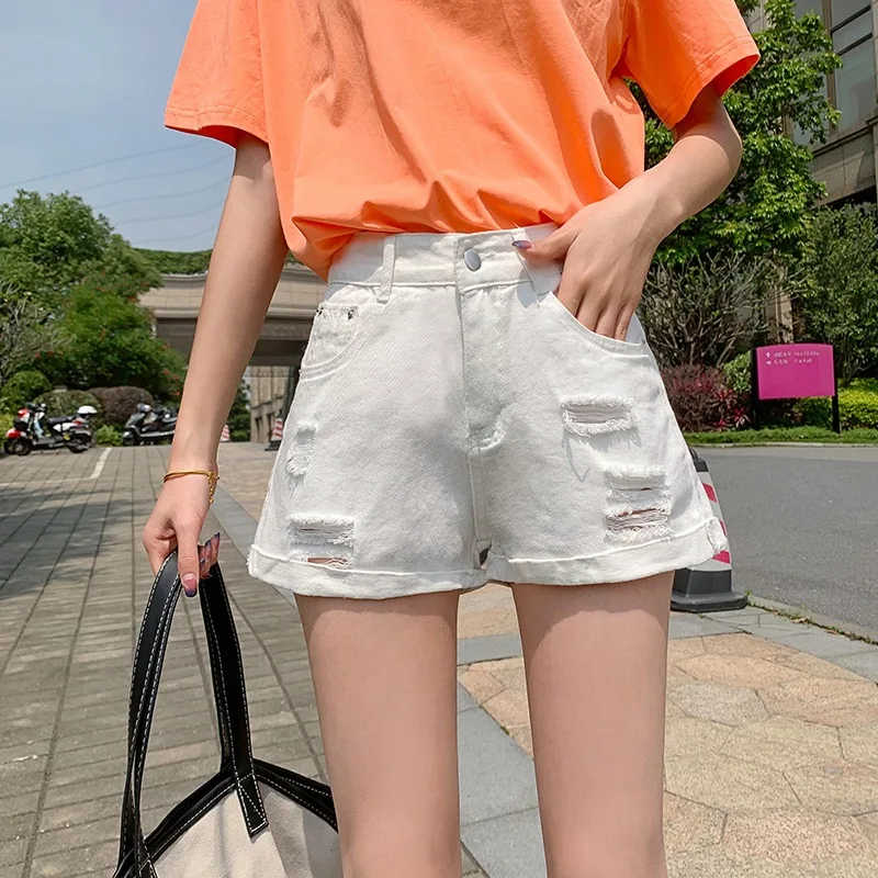 Korean Style White Jean Shorts Women High Waisted Denim Shorts Jeans Summer High Quality Women's Hole Denim Shorts for Women