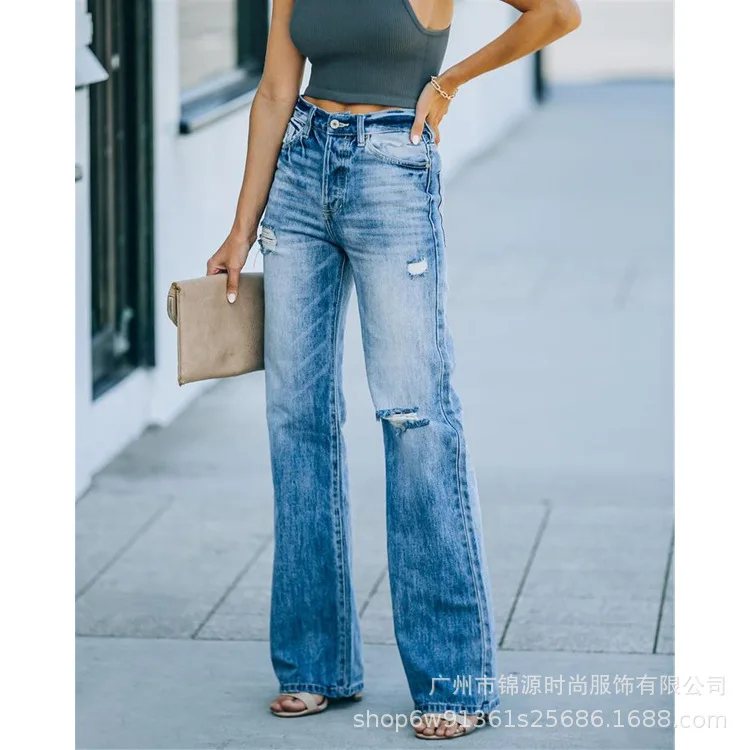 Name | Solid Casual Baggy Ripped Jeans Pants for Women Fashion Vintage Women's High Waist Wide Pant Youthful Female Trousers Streetwear |