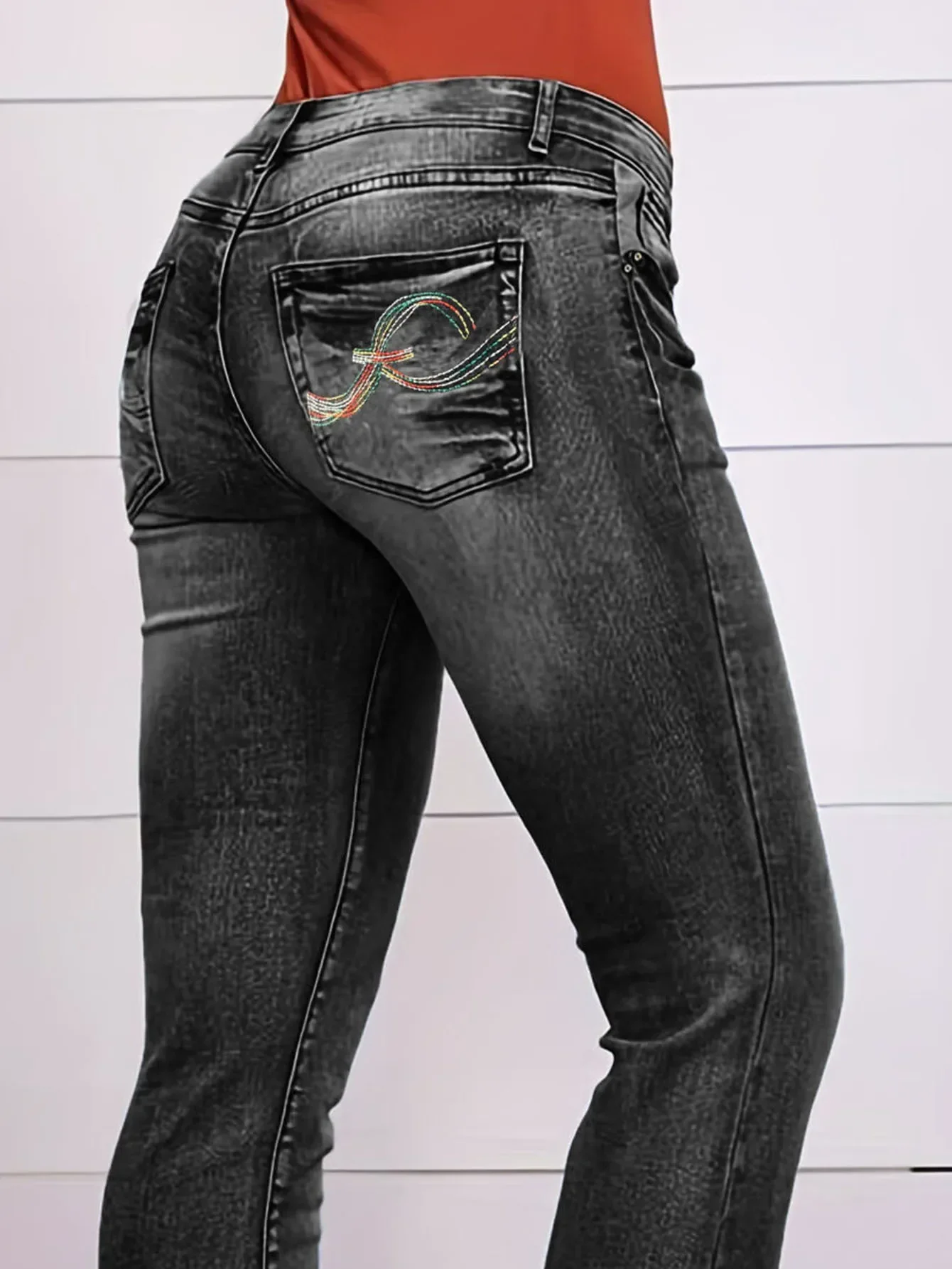 Name | Women Jeans Straight Pants Embroidery Denim Mid Waist Loose Fit Slight Strech Ankle Length Pockets Spring 2024 Streetwear |