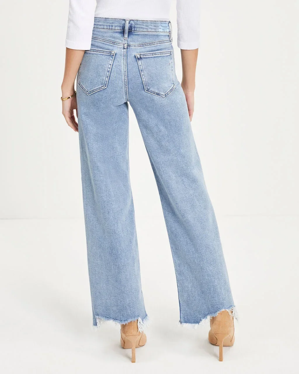 Women Denim Tassel Wide Leg Pants Jeans Washing Loose Fit Mid Waist Pockets Zipper Fly Solid Color Ankle Length Pants Basics