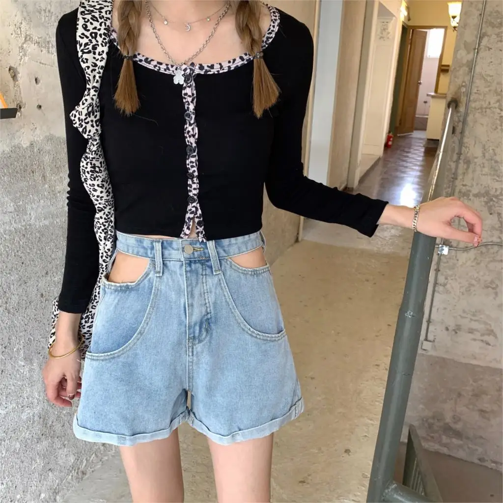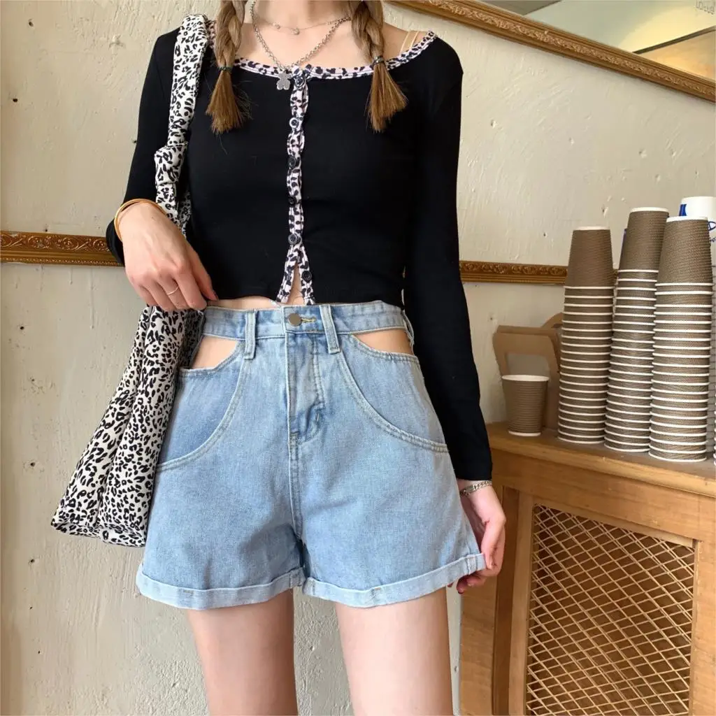 Casual Women Denim Shorts Crimping High Waist Slim Summer Jeans Shorts Feminino Chic Hot Ladies Bottom Cut out shorts