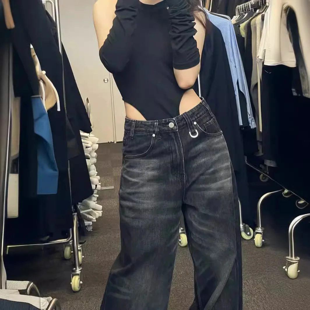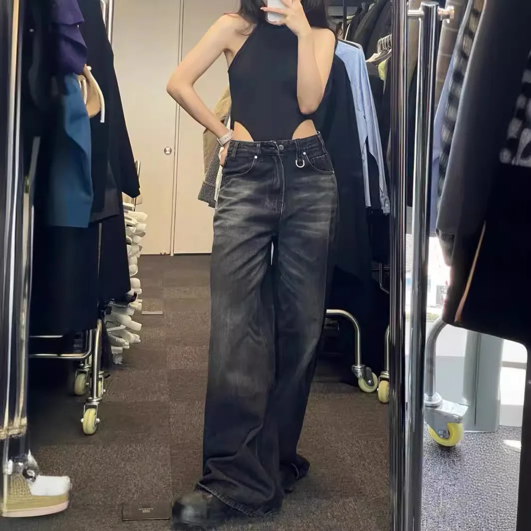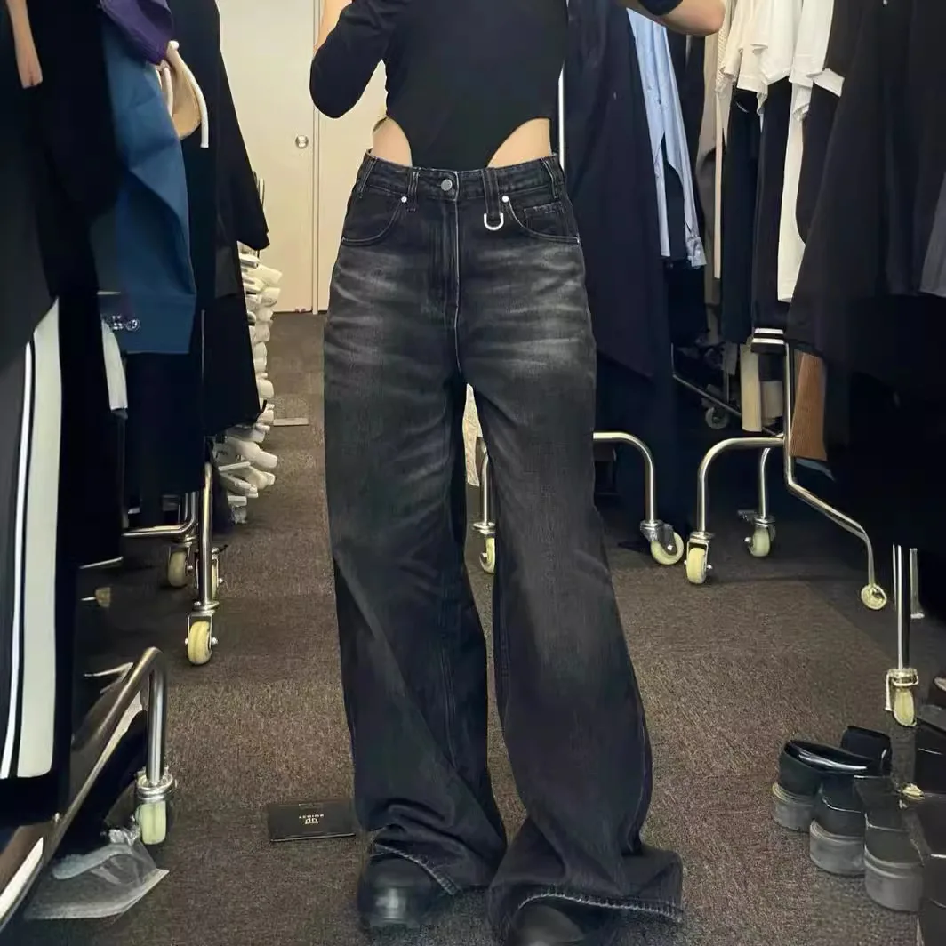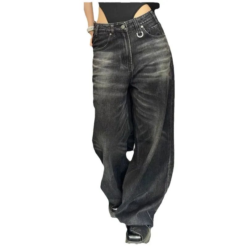 Name | Women Jeans High Street Straight Pants Denim Washing High Waist Loose Fit Pockets Full Length Pants Solid Slight Strech 2024 |