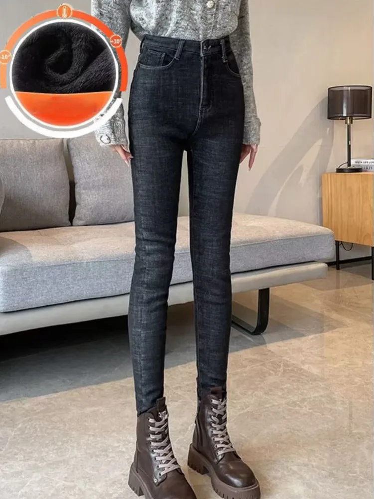 Name | Thickened Plush Women's Jeans High Waist Elastic Slim Pencil Pants Winter Wool Insulation Jeans Women Fur Plush Denim Pants |