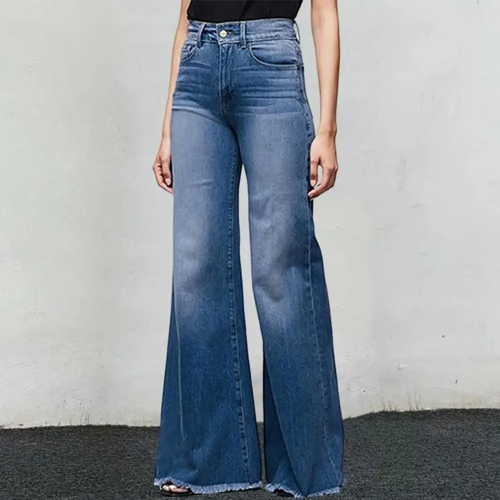 Denim Trousers Gradient Color Women Jeans Women Wide Leg Flare Denim Trousers