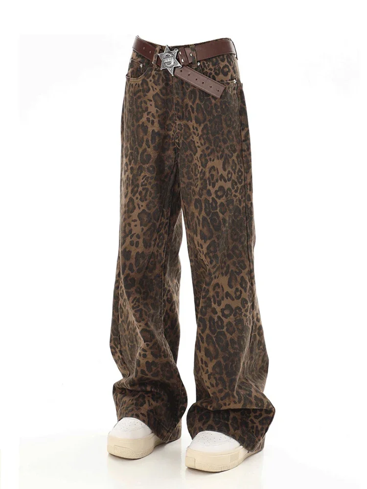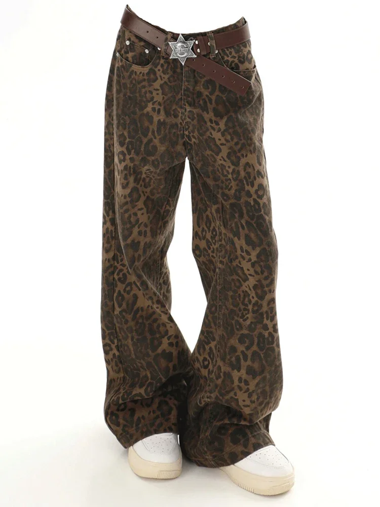 DAILOU Baggy Leopard Print Y2k Jeans Women High Waisted Casual Wide Leg Denim Pants Fashion Streetwear Retro Straight Jeans
