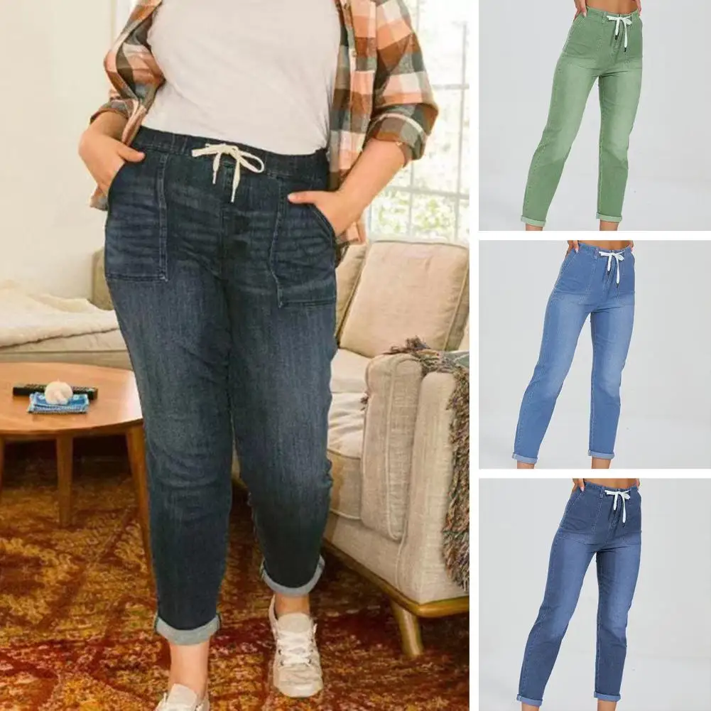 Name | High Waist Denim Pants Streetwear Denim Pants Women's High Waist Lace-up Slim Fit Jeans with Zipper Fly Elastic Straight Leg |