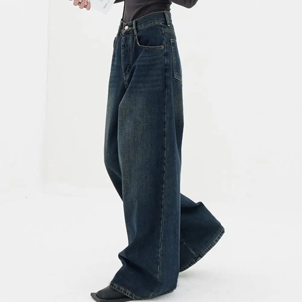 Women Fashion Harajuku Streetwear Retro Autumn High Waist Jeans Loose Wide Leg Straight Loose Denim Trousers Baggy Pants