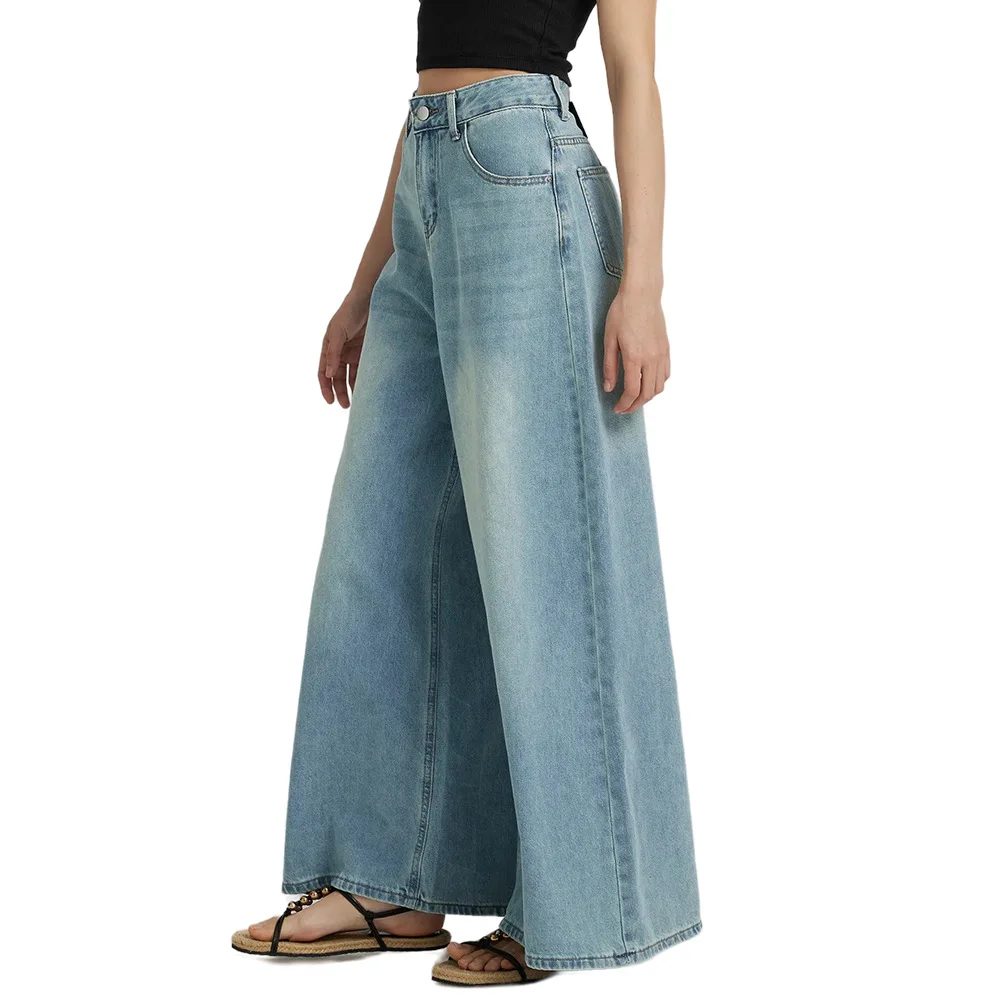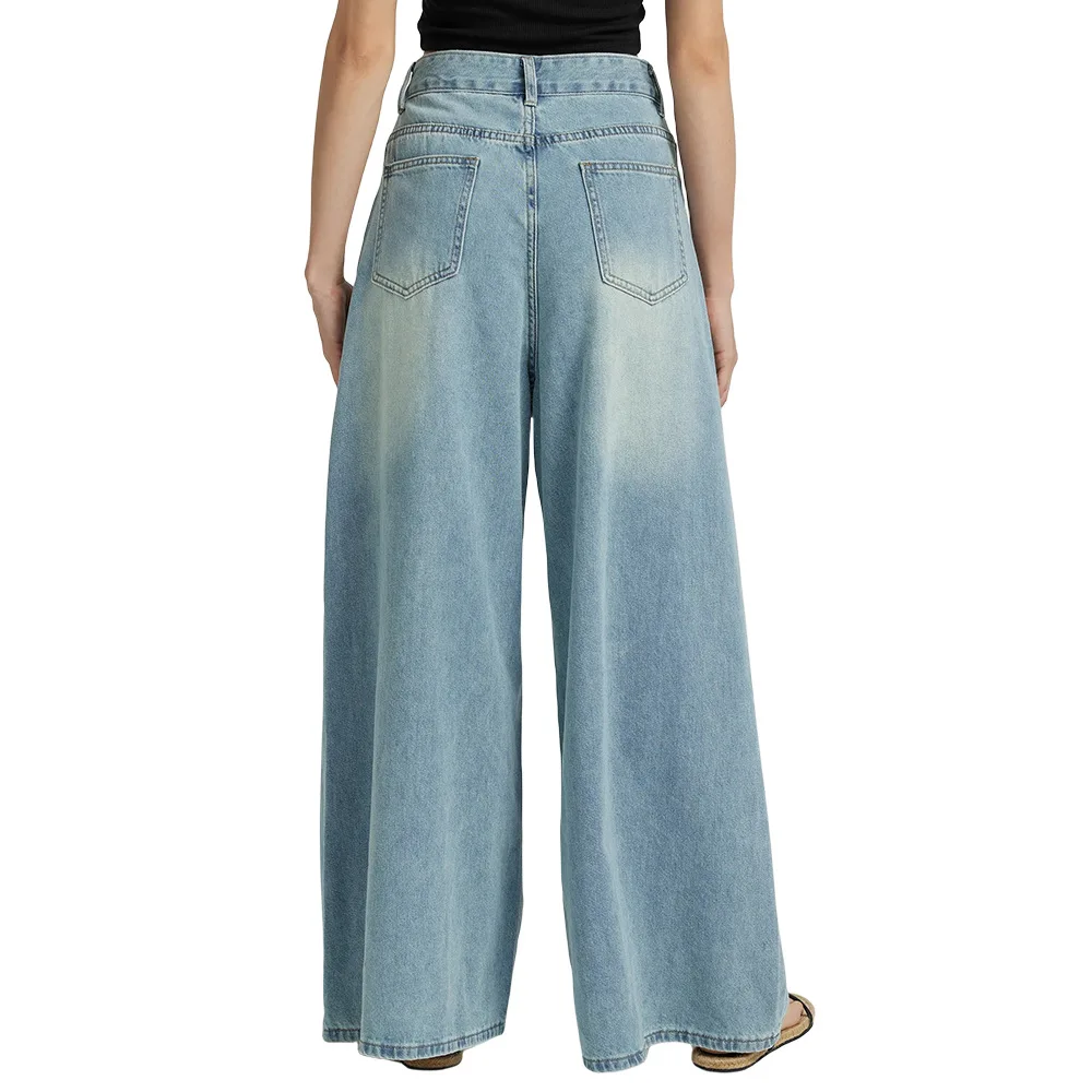 Wide Leg Pants Blue Jeans for Women Long Straight Pants Denim Trousers High Waist Y2k Loose Casual Trouser Autumn Spring 2024