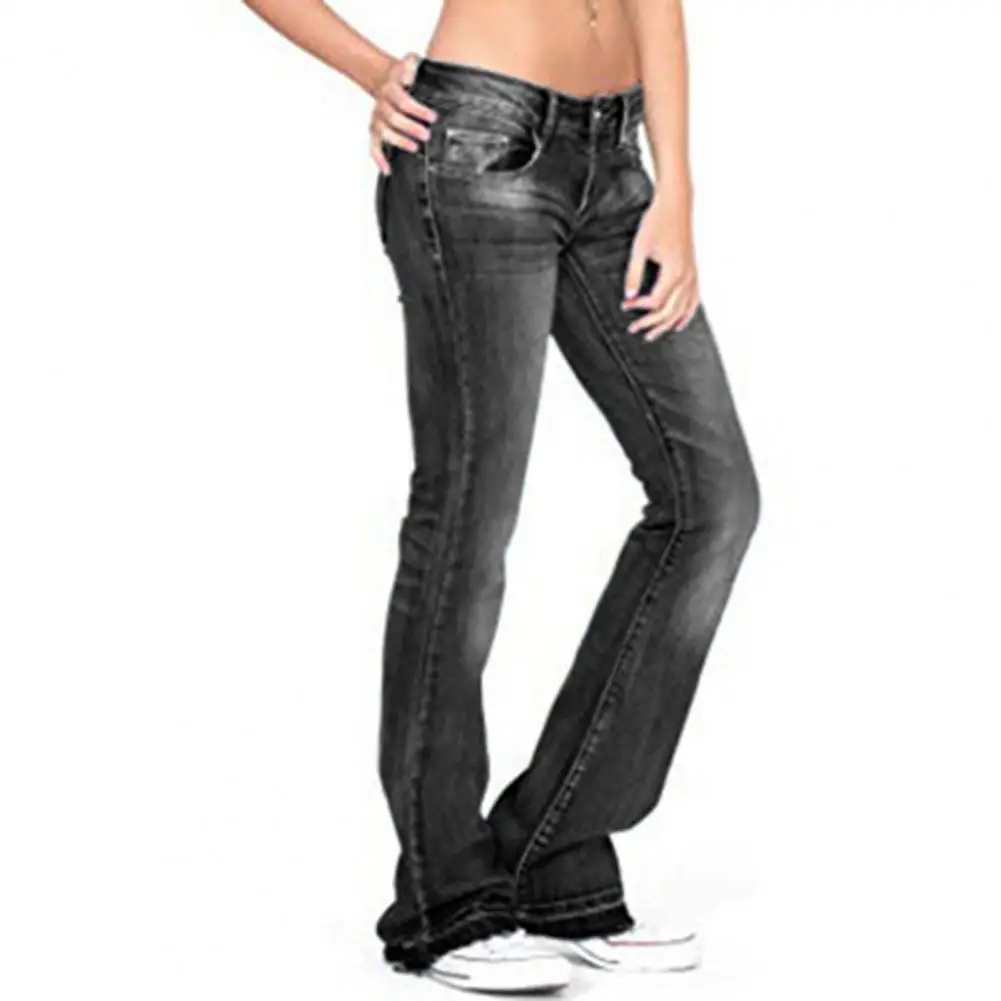Gradient Color Jeans Retro Flared Hem Women's Jeans with Gradient Color Mid Waist Pockets Slim Fit Stretchy Colorfast for Ladies