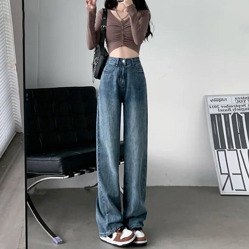 Name | 2023 Korean Women New High Waist Straight Leg Jeans Woman Simple Style Casual Cotton Denim Pants Ladies Loose Streetwear Jeans |