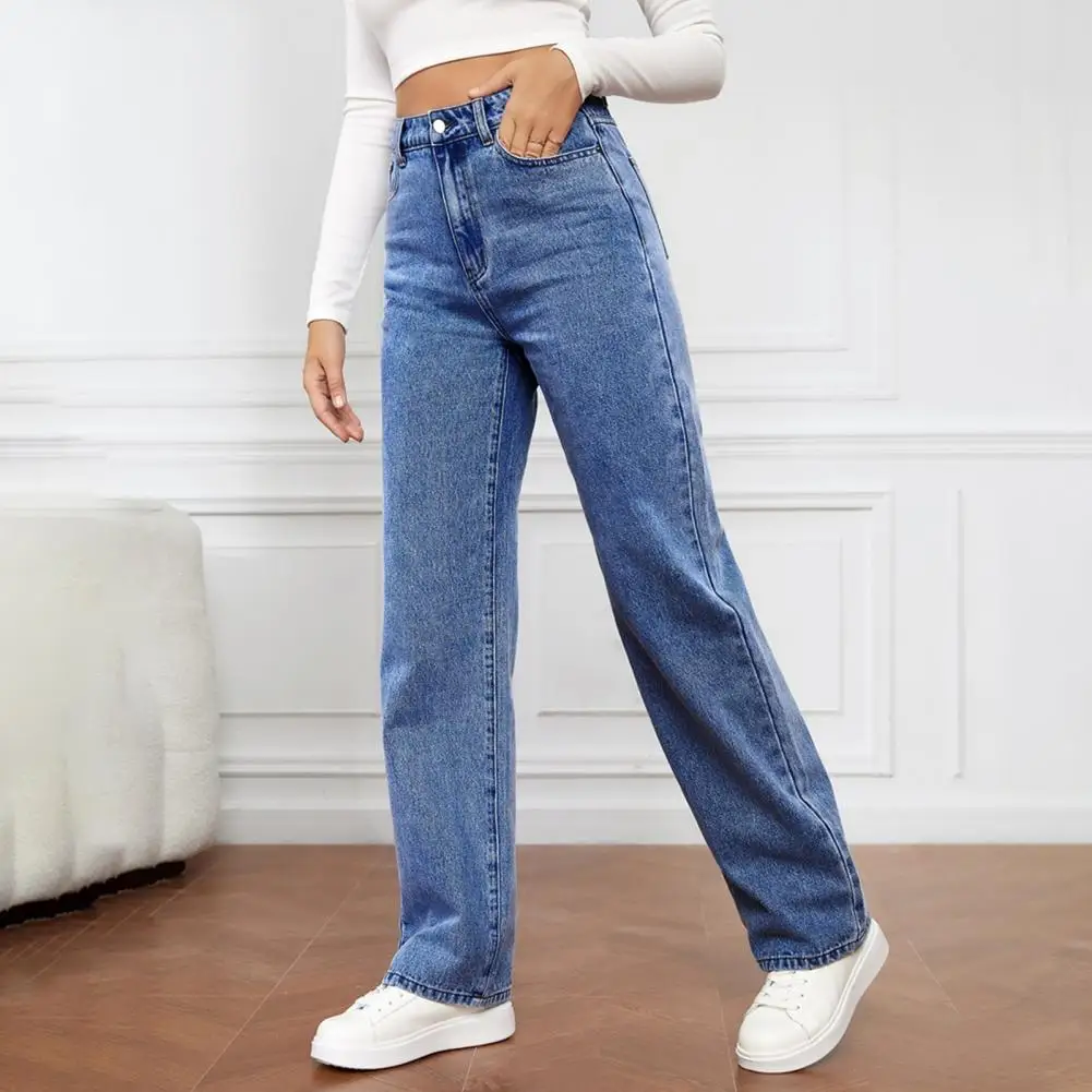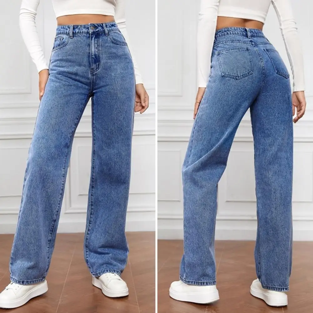 Women High-waist Jeans High Waist Wide Leg Women's Jeans with Retro Straight Pockets Slim Fit Full Length Denim Pants in for A