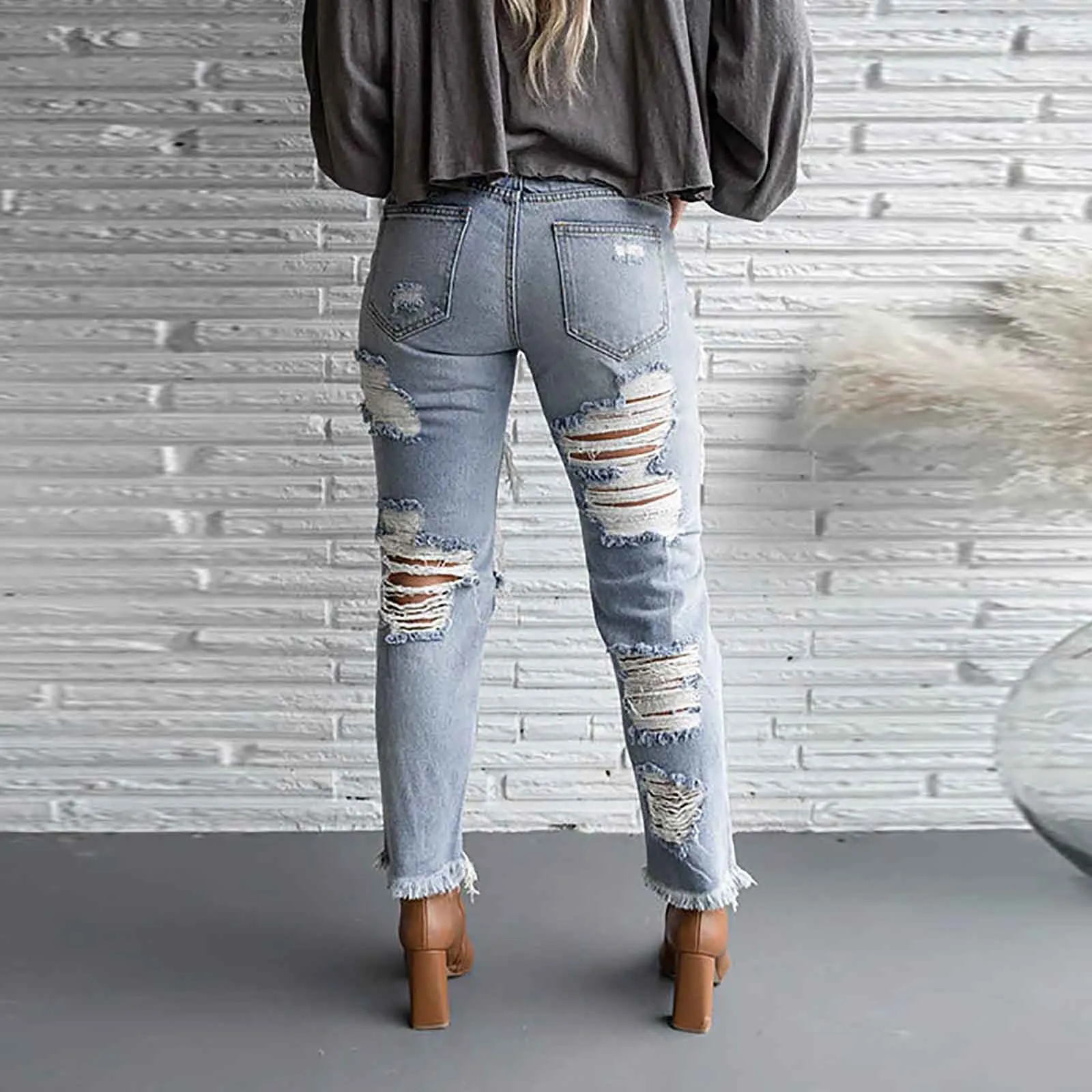Name | Streetwear Straight Pants Ladies Hole Jeans High Waist Slim Pants Ladies Jeans Y2K Summer Plus Size High Street Jean |