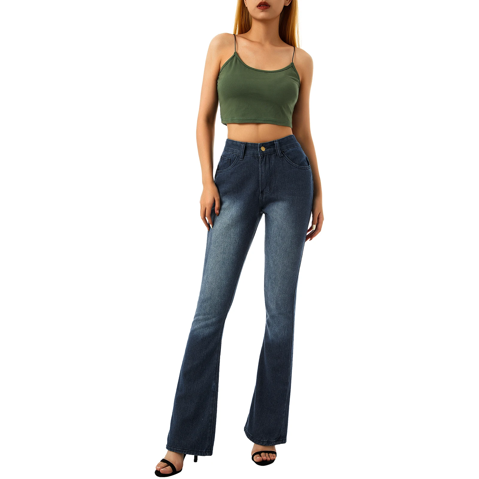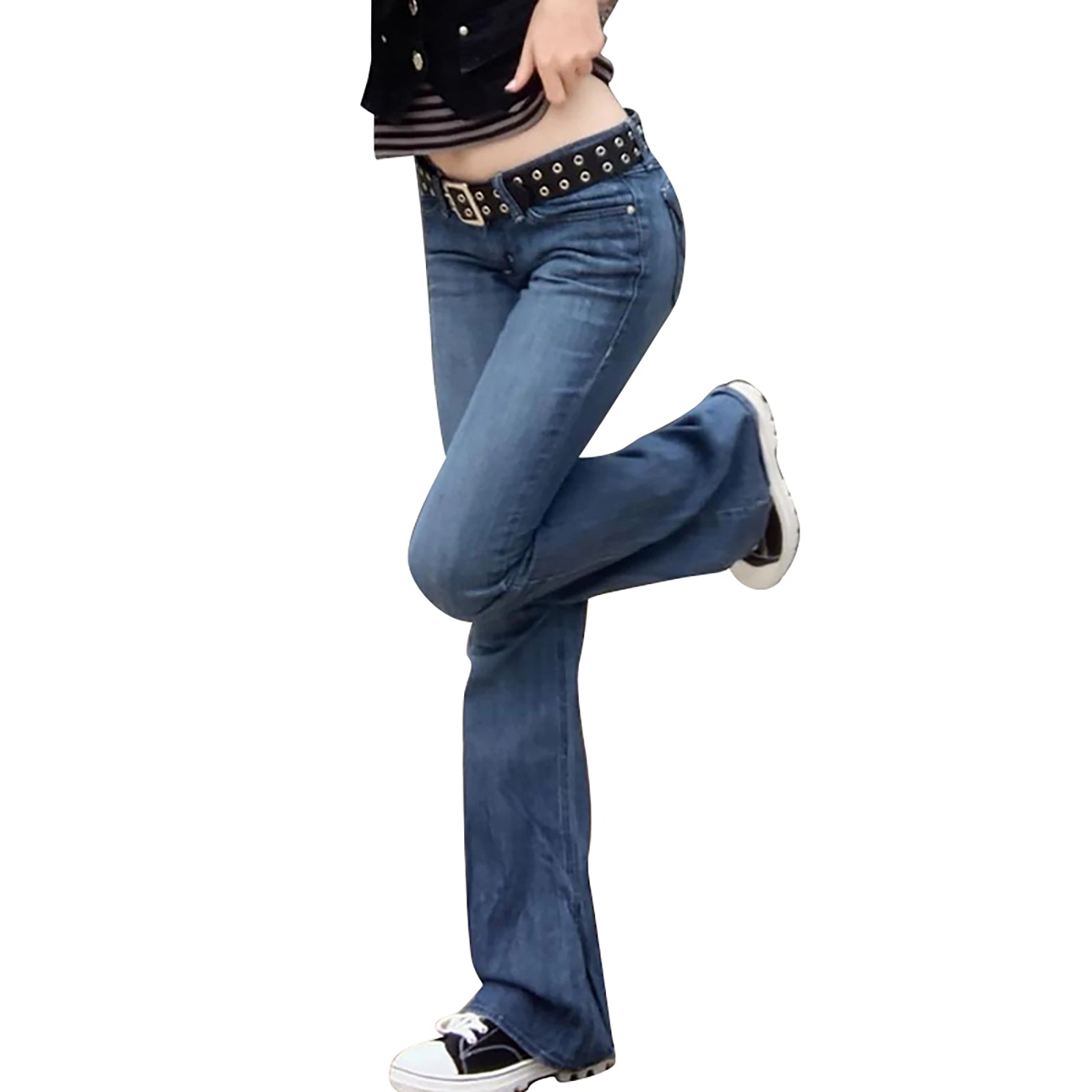 Name | Women Casual Denim Flared Pants Solid Color Loose Low Waist Flared Pants With Pockets Spice Retro Denim Pants |