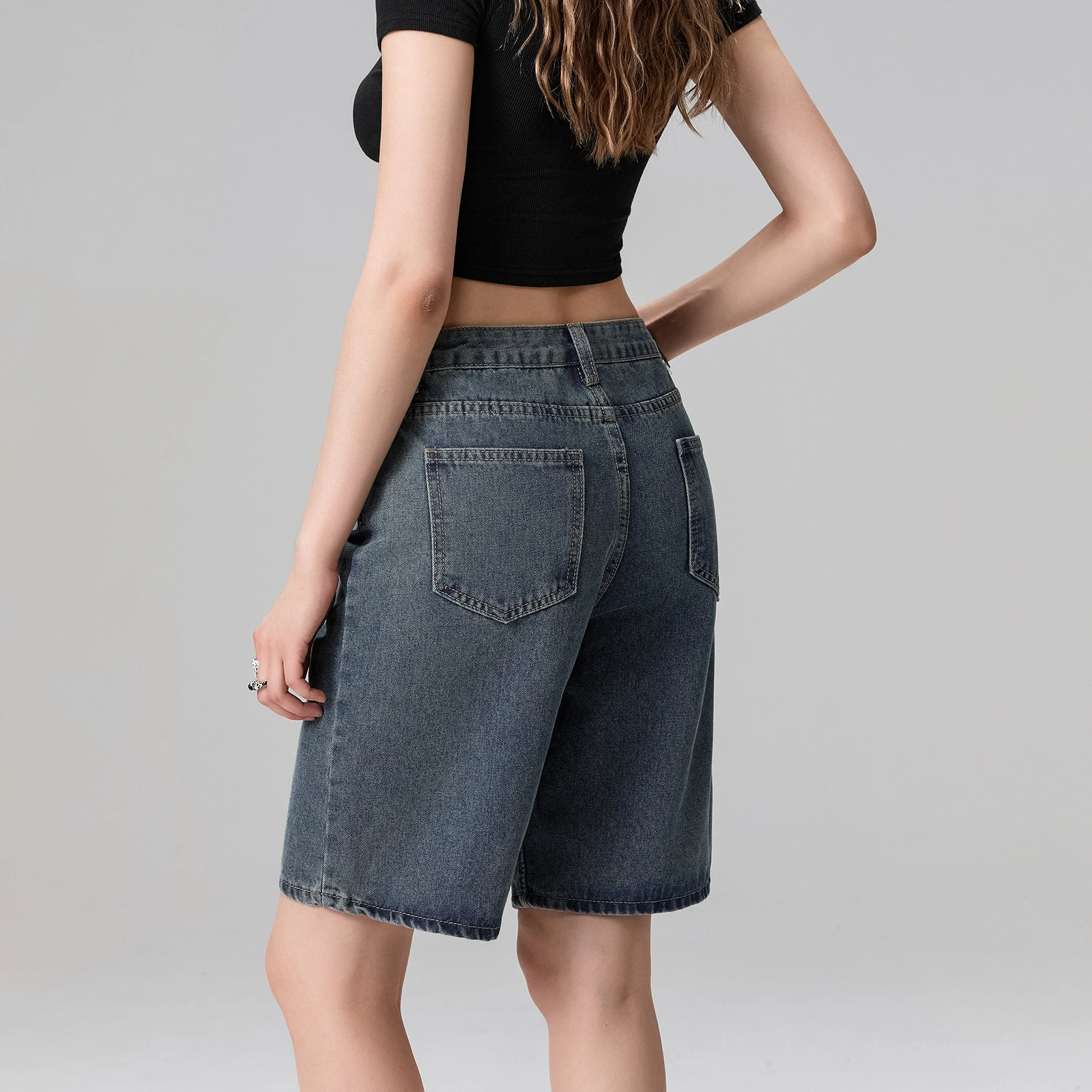 Women Vintage y2k Baggy Denim Shorts Wide Leg Pants Fashion High Waist Loose Fit Casual Knee Length Jeans Shorts with Pocket