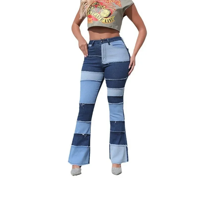 Women Jeans Wide Leg Pants Denim Washing Flare Pants Loose Fit Pockets Basics Spliced Ankle Length Boot Cut Casual Mid Waist