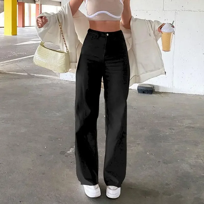 Fashion Casual High Waisted Black Jeans for Women Y2k Wide Leg Pants Women Streetwear Solid Color Baggy Jeans Female 2023 Autumn