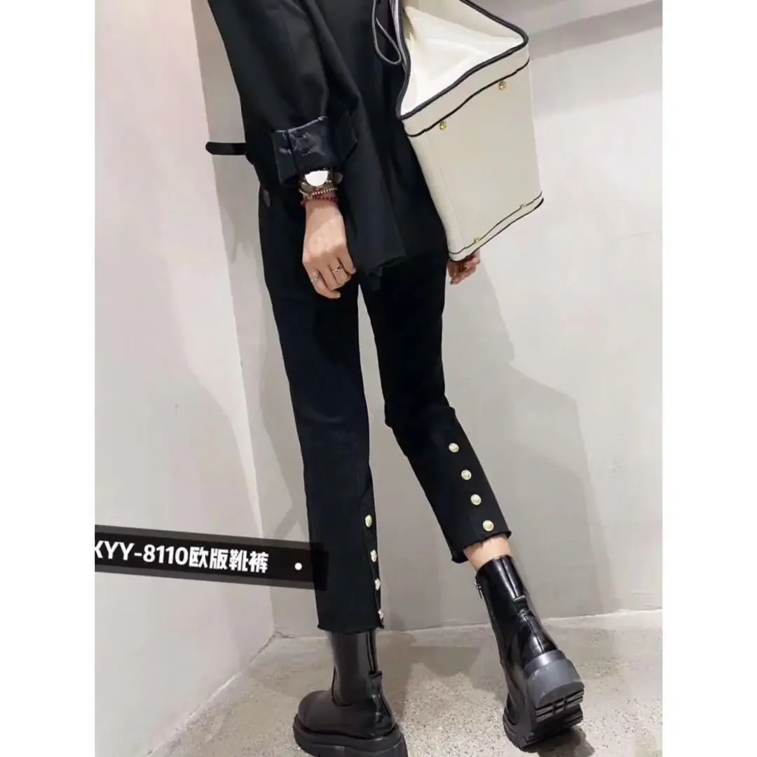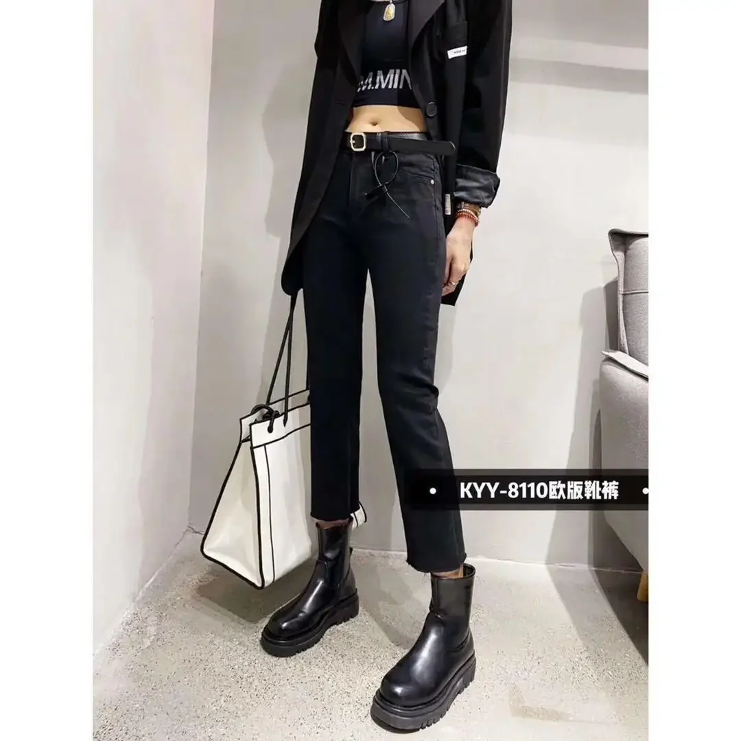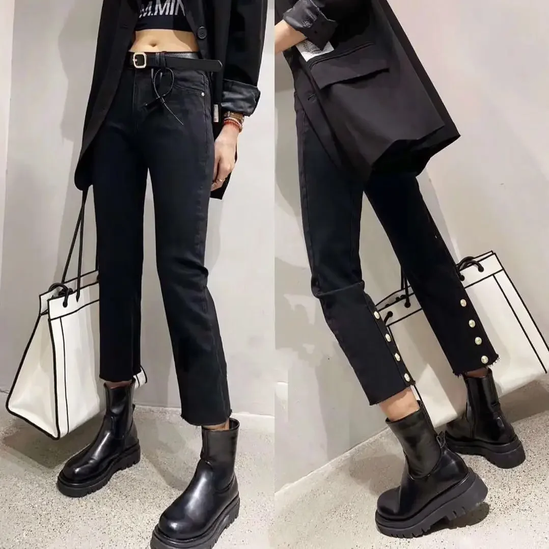 Name | Woman Jeans Pants Black High Waist Straight Autumn Winter Eight Trousers Pantalones Vaqueros Mujer |