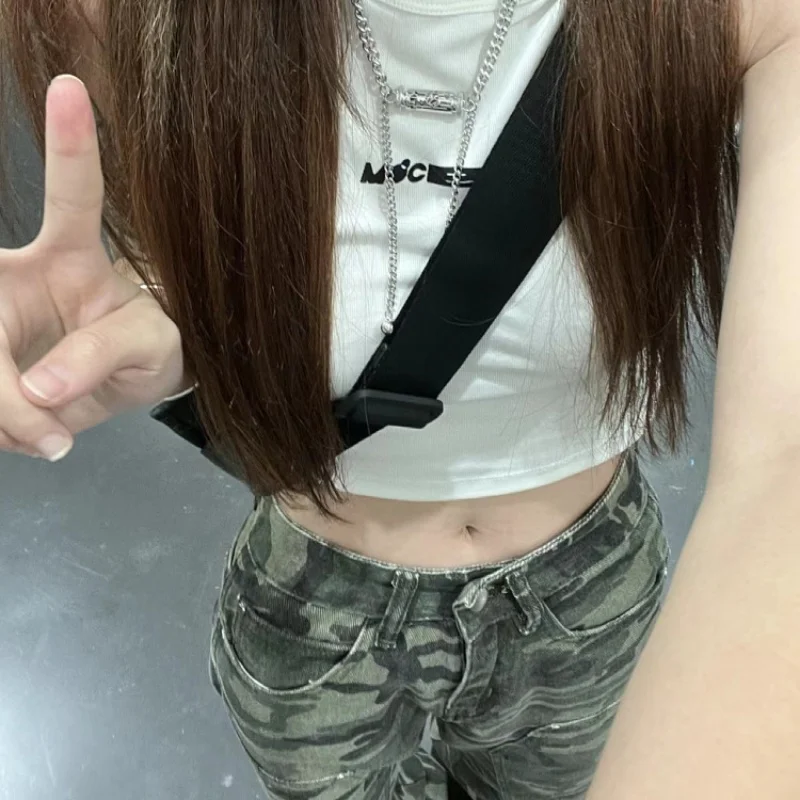 Cargo Pants Camouflage Casual Jeans Women 2024 New American Hip-Hop Loose Straight Leg Pants High Waisted Slim Wide Leg Pants