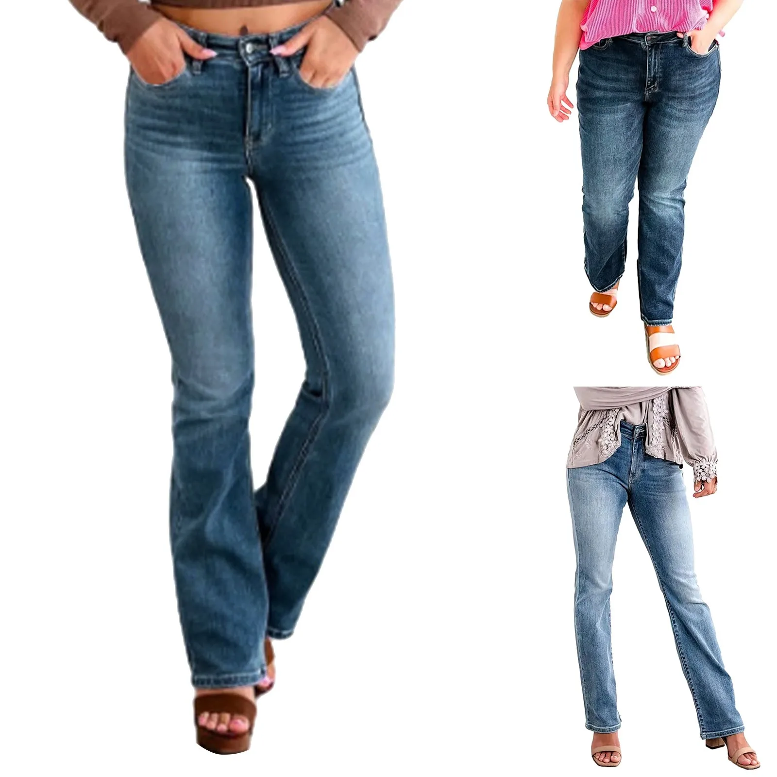Name | Blue Micro-Pull Denim Trousers Spring Summer Women 2024 New Elastic High Waist Popular Retro Classic Flare Pants Bootcut Jeans |