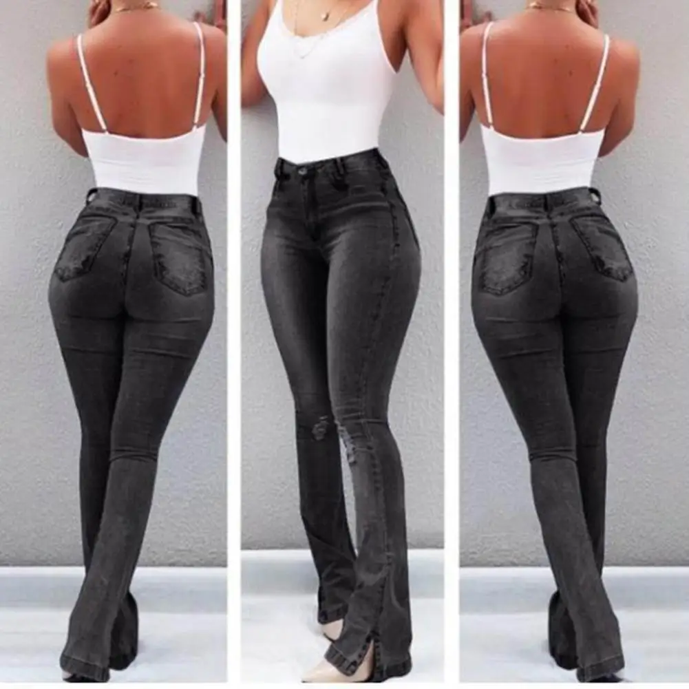 Fashion Women Jeans Tight Stretchy Elastic Slit Hem Women Jeans Skinny Jeans Slim Fit