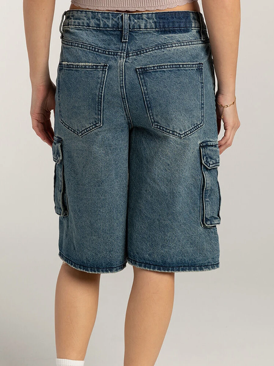 New Fashion Women Summer Denim Shorts Casual Solid Color Jean Short Pants with Pockets for Vacation Beach Club Streetwear