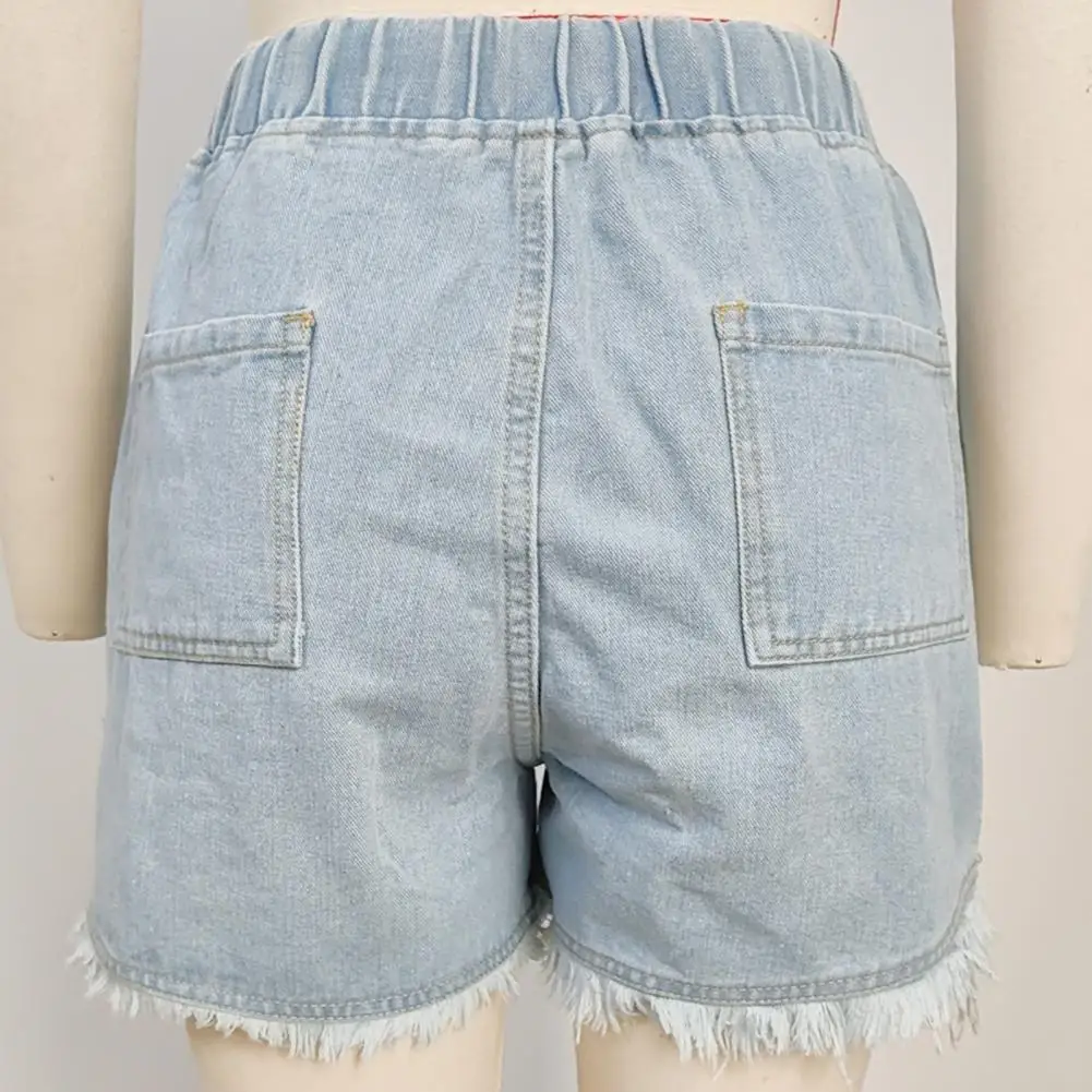Lightweight Denim Shorts Women Denim Shorts Stylish Women's Denim Shorts Drawstring Elastic Waist Ripped Edge Pockets for Casual