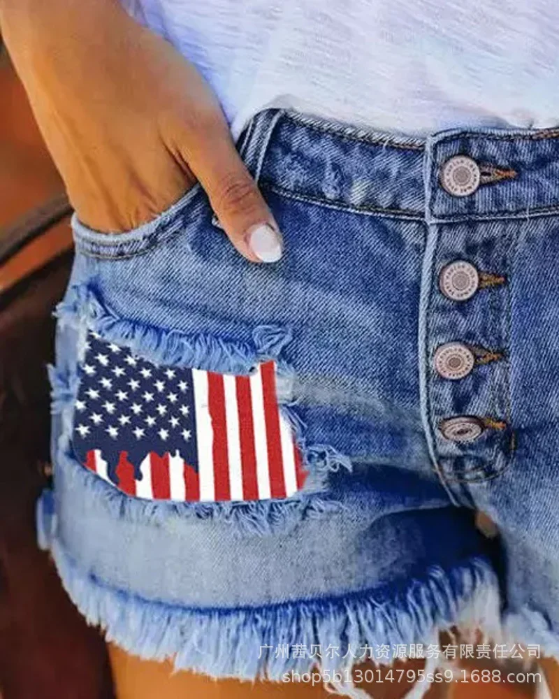 2023 Womens Jeans American Flag Patch Frayed Hem Denim Shorts for Women