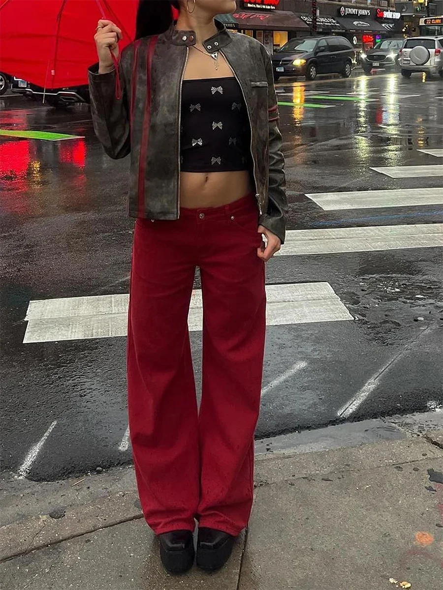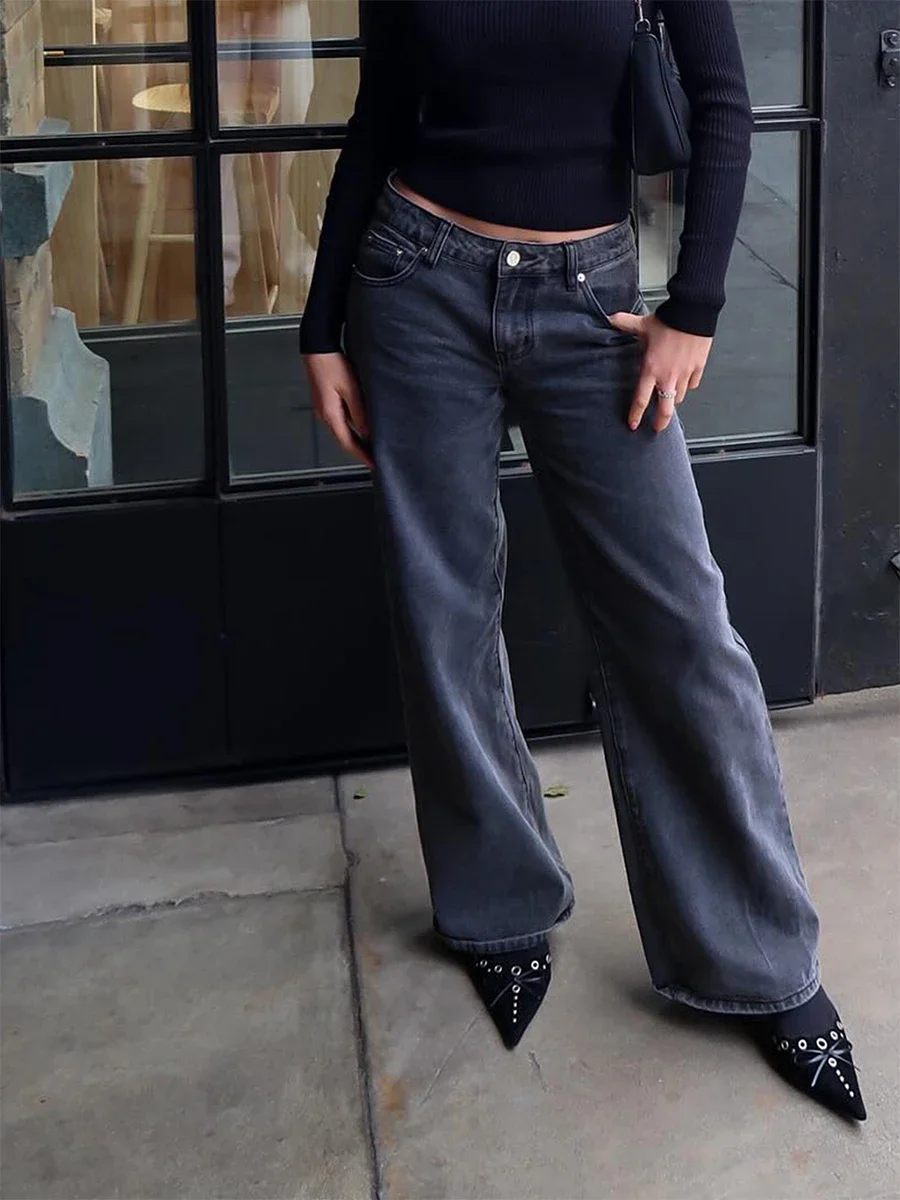 Y2k Wide Leg Jeans Women Autumn Casual Simple Mid Waist Washed Denim Trouser 2024 New Fashion Office Lady Straight Pants