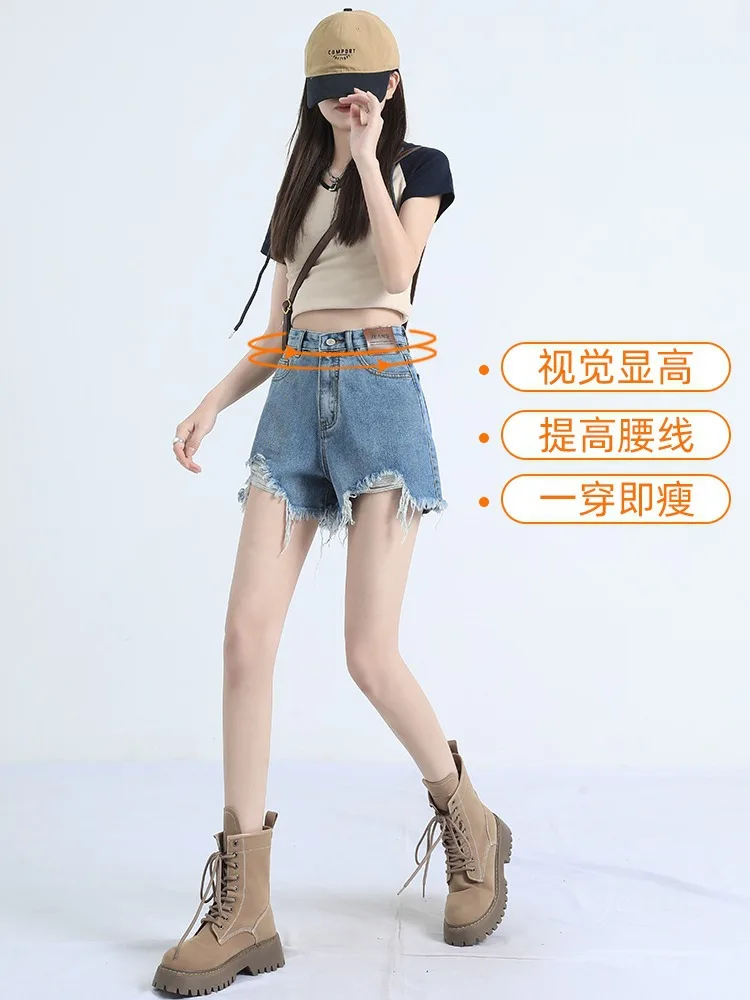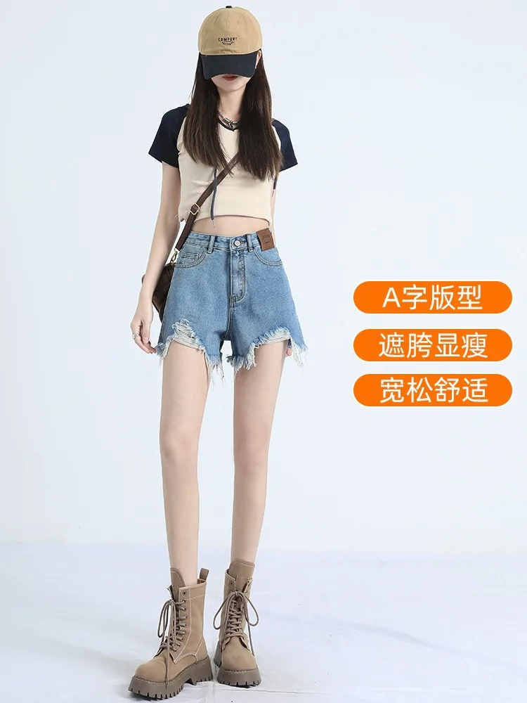 Summer Denim Shorts Women Korean Fashion Ripped Holes High Waist Short Jeans Trousers Female Casual Wide Leg Short Pants