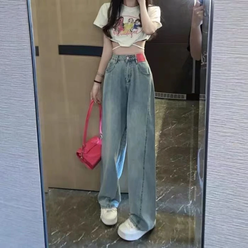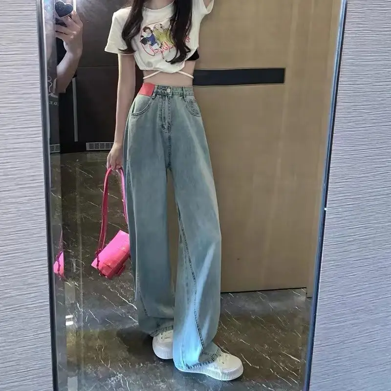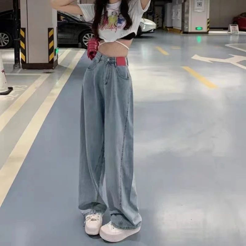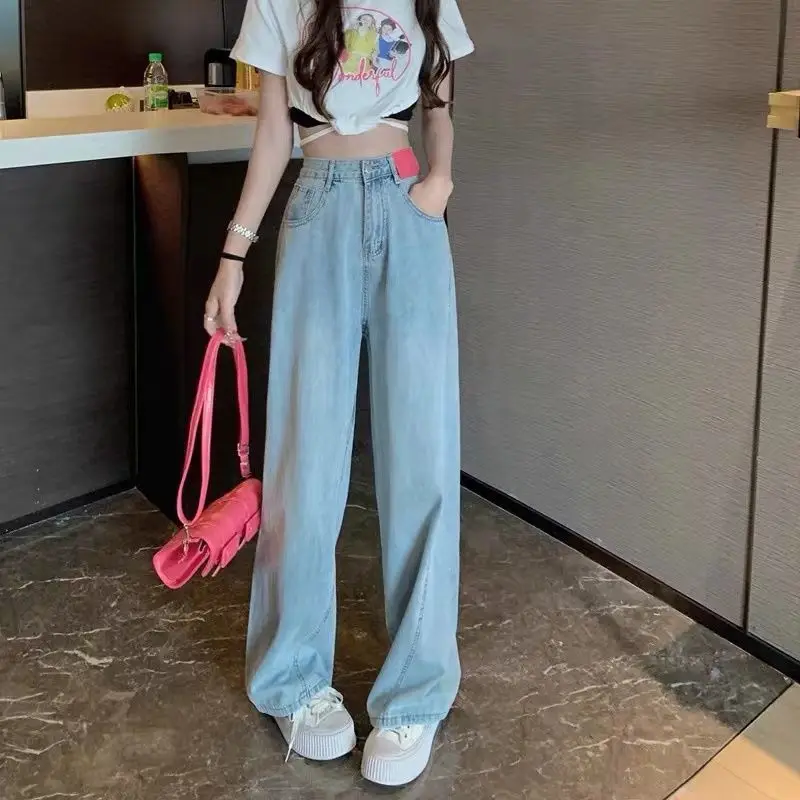 2022 Korean Spring and Summer New Loose Wide Leg Jeans + Large Fashionable High Waist Slim Casual Women's Jeans