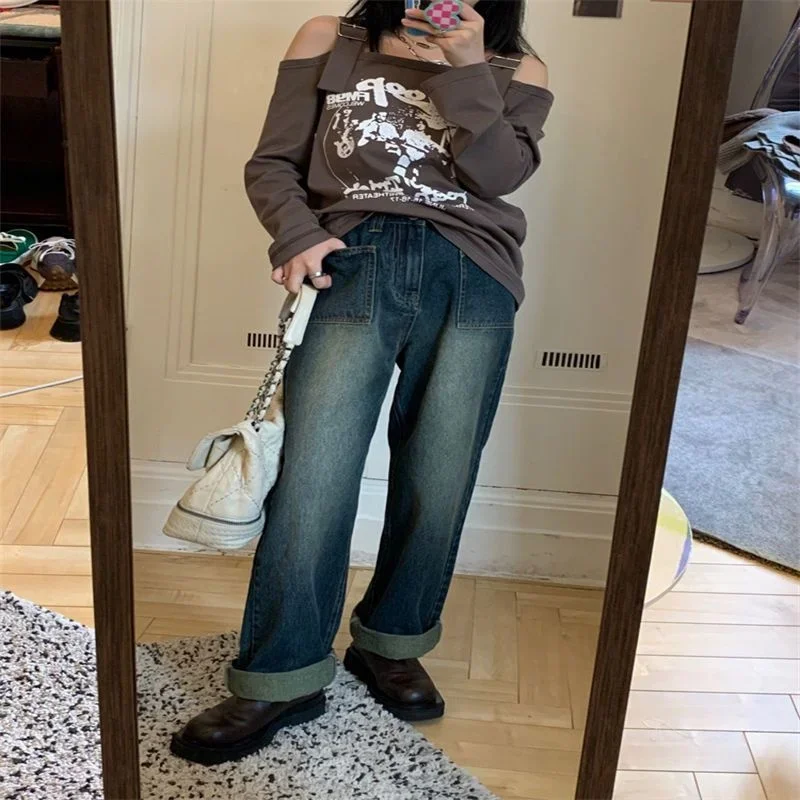 Name | High Waist Retro Casual Jeans 2023 Korean Loose Straight Leg Pants Korean Fashion Pantalon Women Clothing Pants Baggy Jeans |