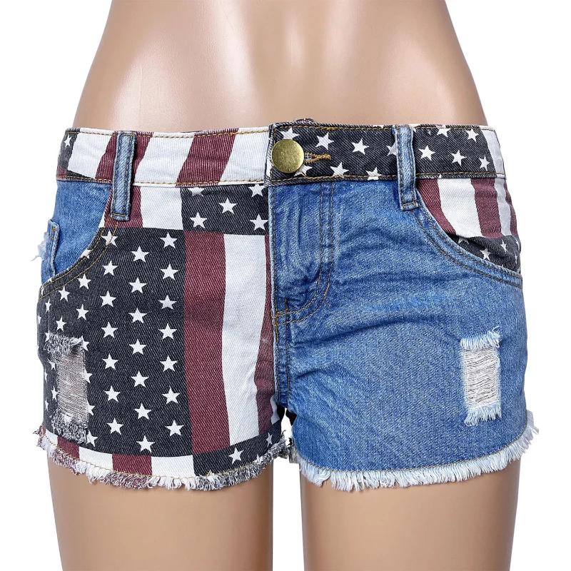 Summer Women's Sexy Low Waist Perforated Shorts Women's Denim Jeans Hot Pants Sea Beach Nightclub Bar Wearing Performance Dance