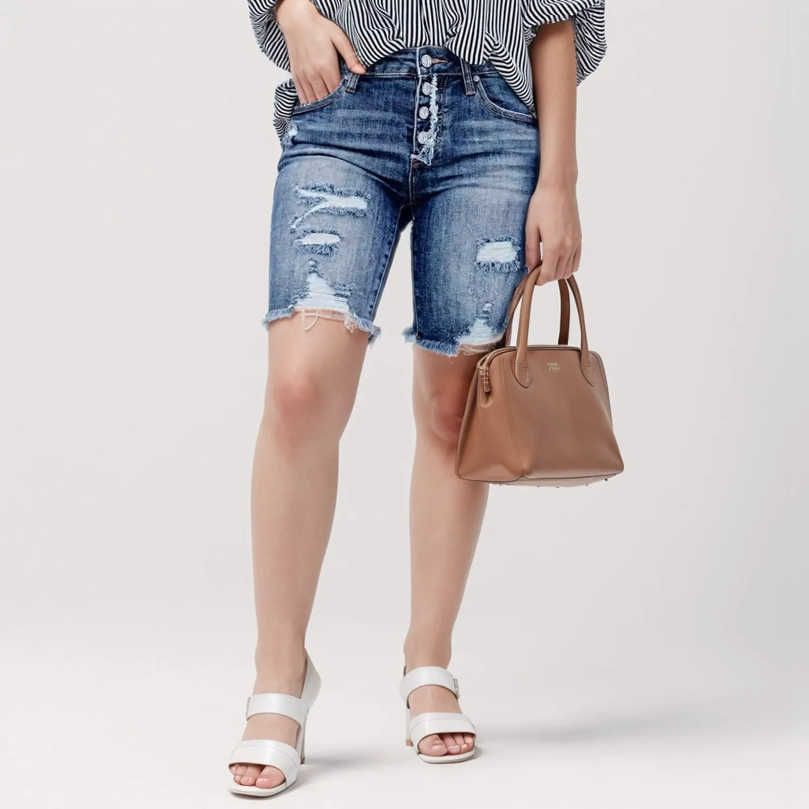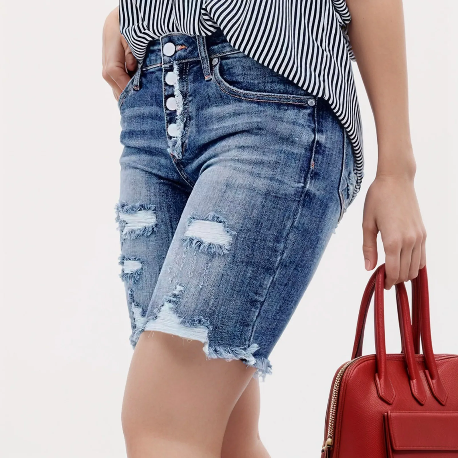 Name | 2024 New Women Jeans Summer Ripped Mid Waist Jeans Fashion Elastic Slim Calf-Length Denim Pencil Pants Casual Female Clothing |